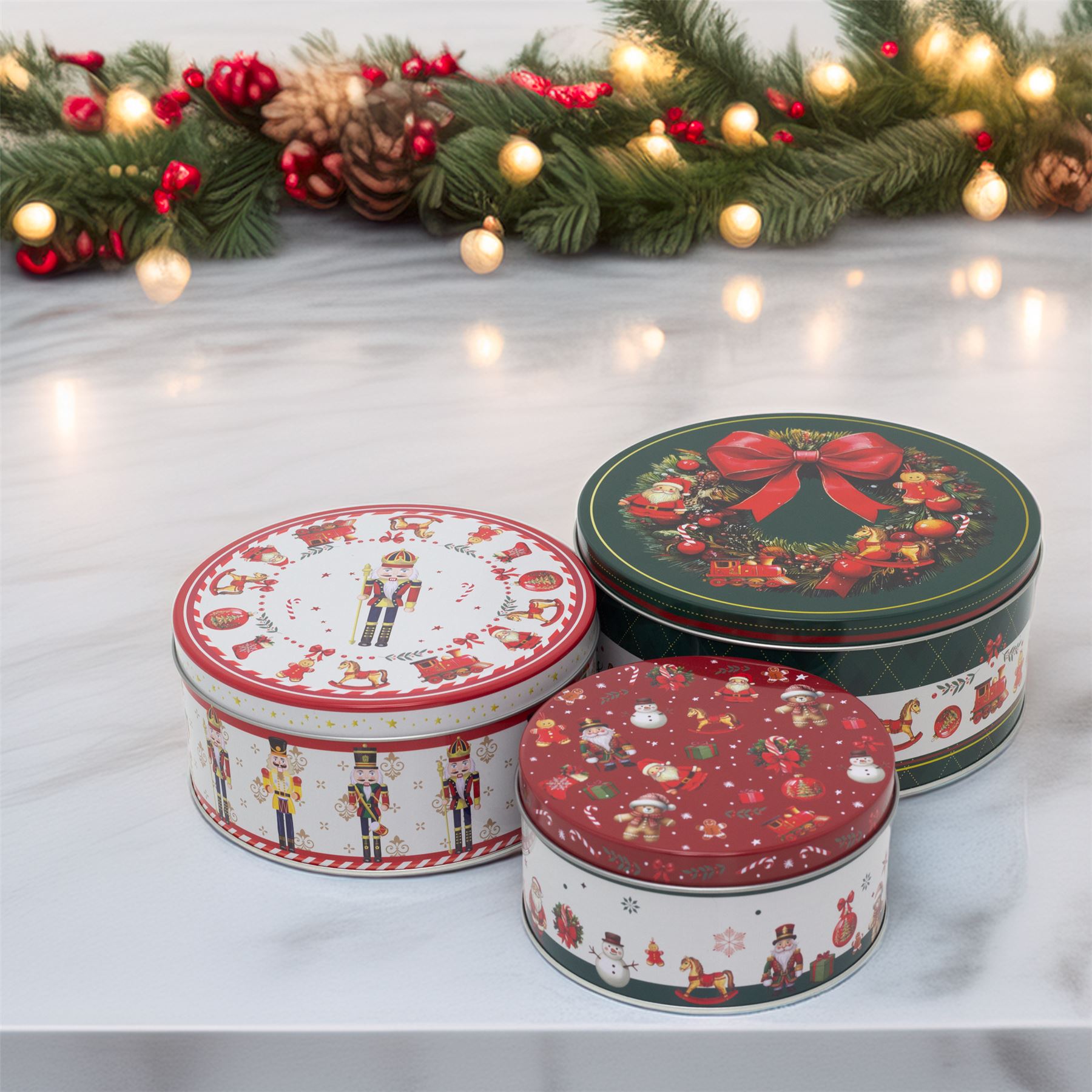 Add festive charm with this set of 3 traditional Christmas tins. Airtight, decorative, and perfect for cakes, cookies, and seasonal gifts