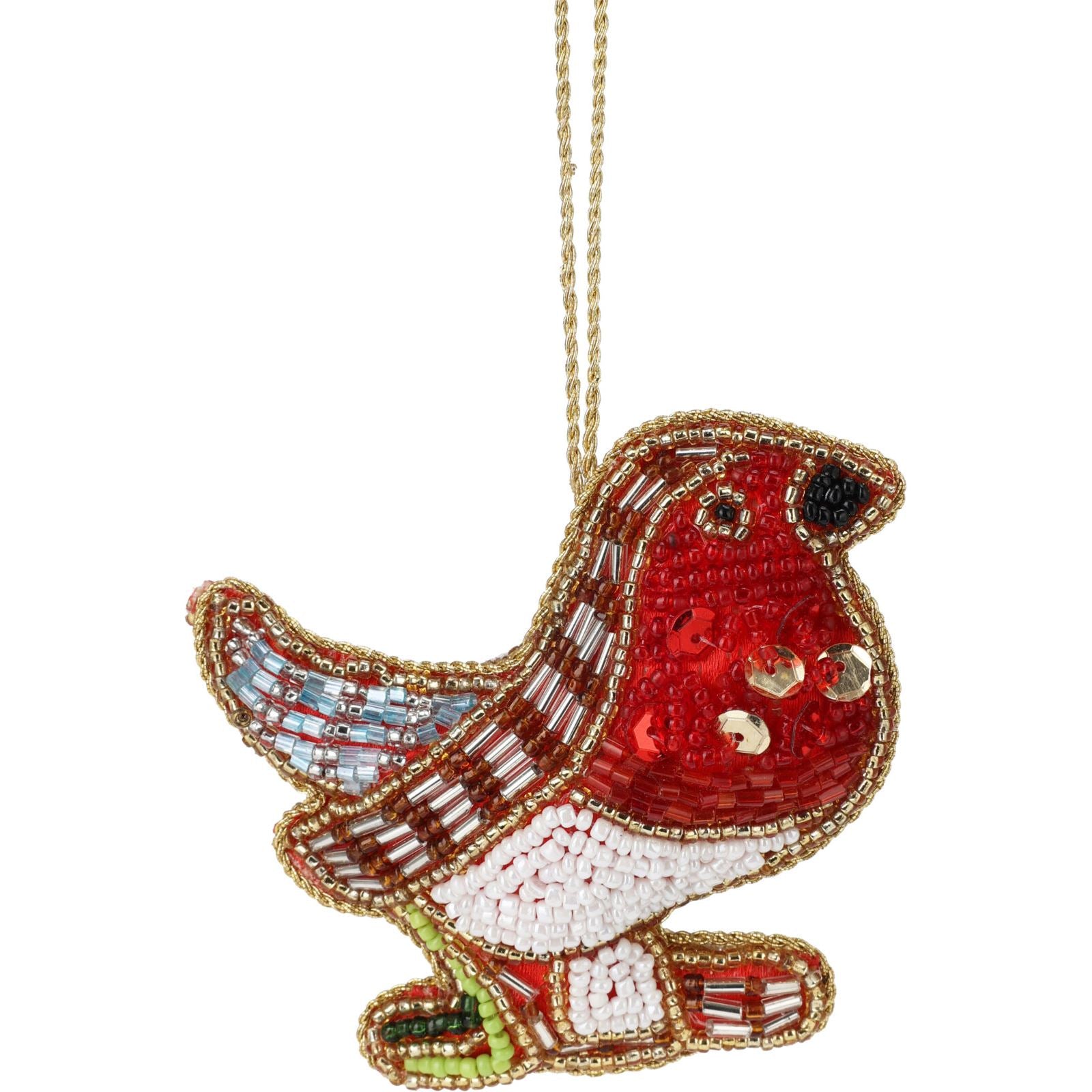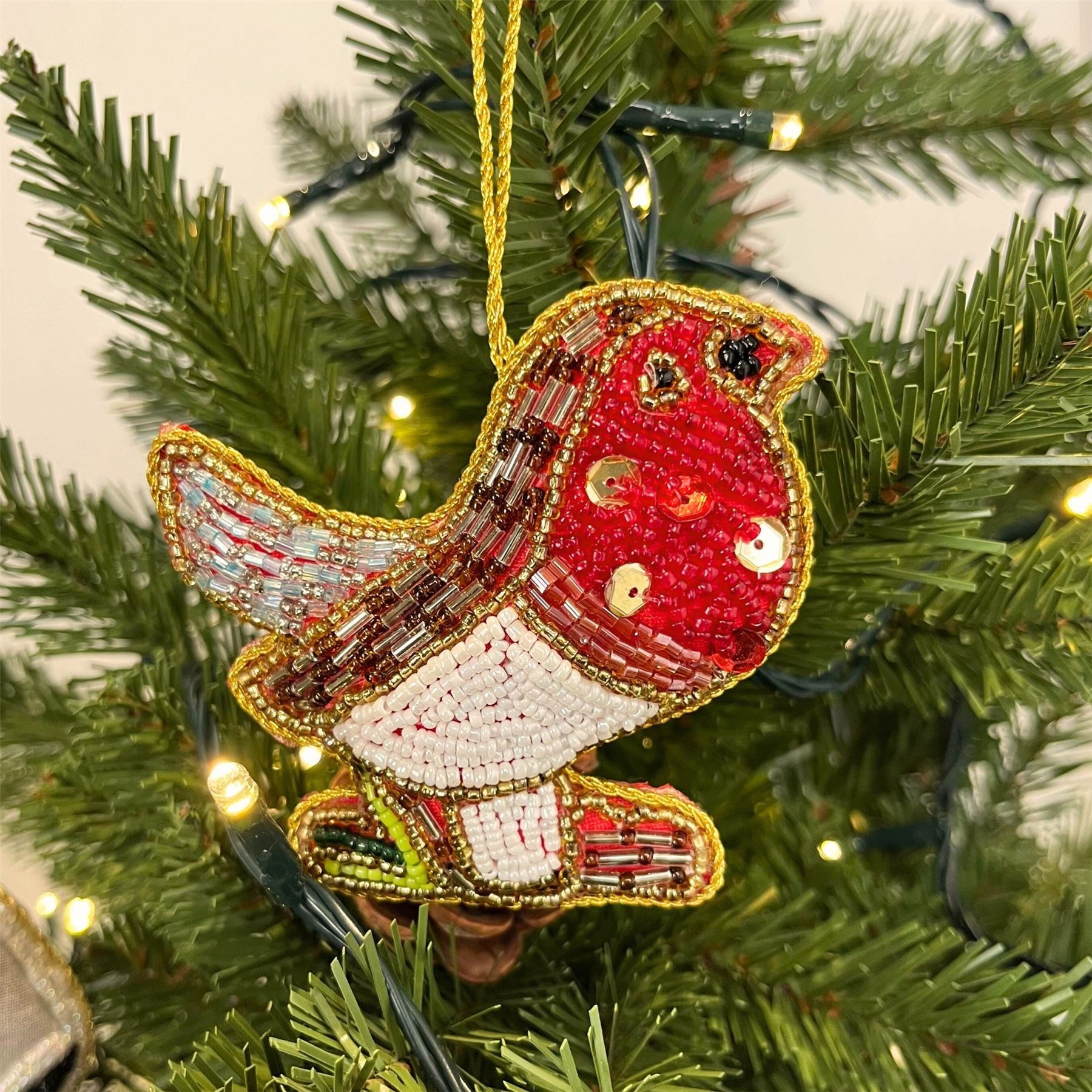 CHRISTMAS TREE ORNAMENT | Adorn your tree with this fabulous beaded robin bauble, showcasing a delightful design that captures the essence of festive cheer and adds a whimsical touch