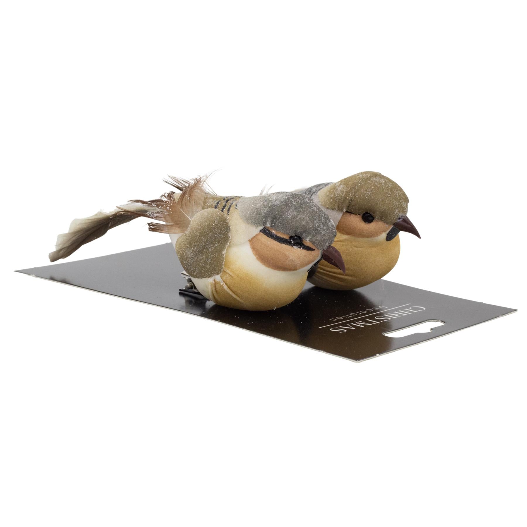 Set of 2 Clip on Birds | 2-piece Christmas Tree Bird Ornaments with Silver Clip
