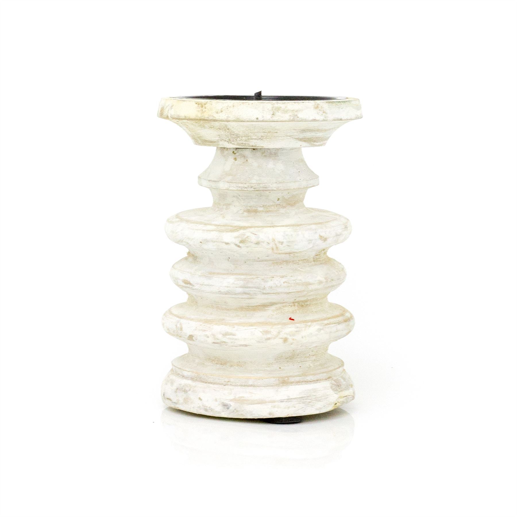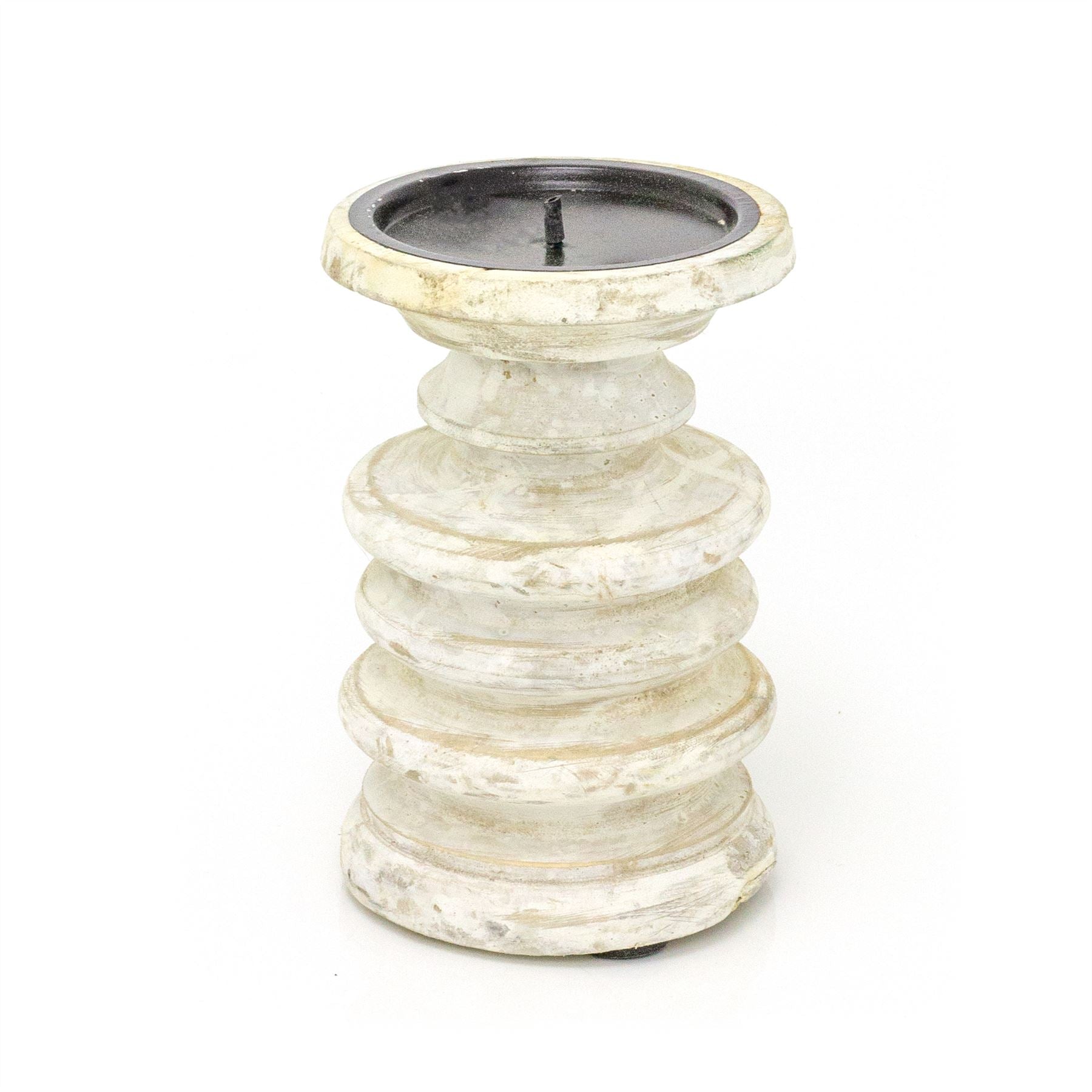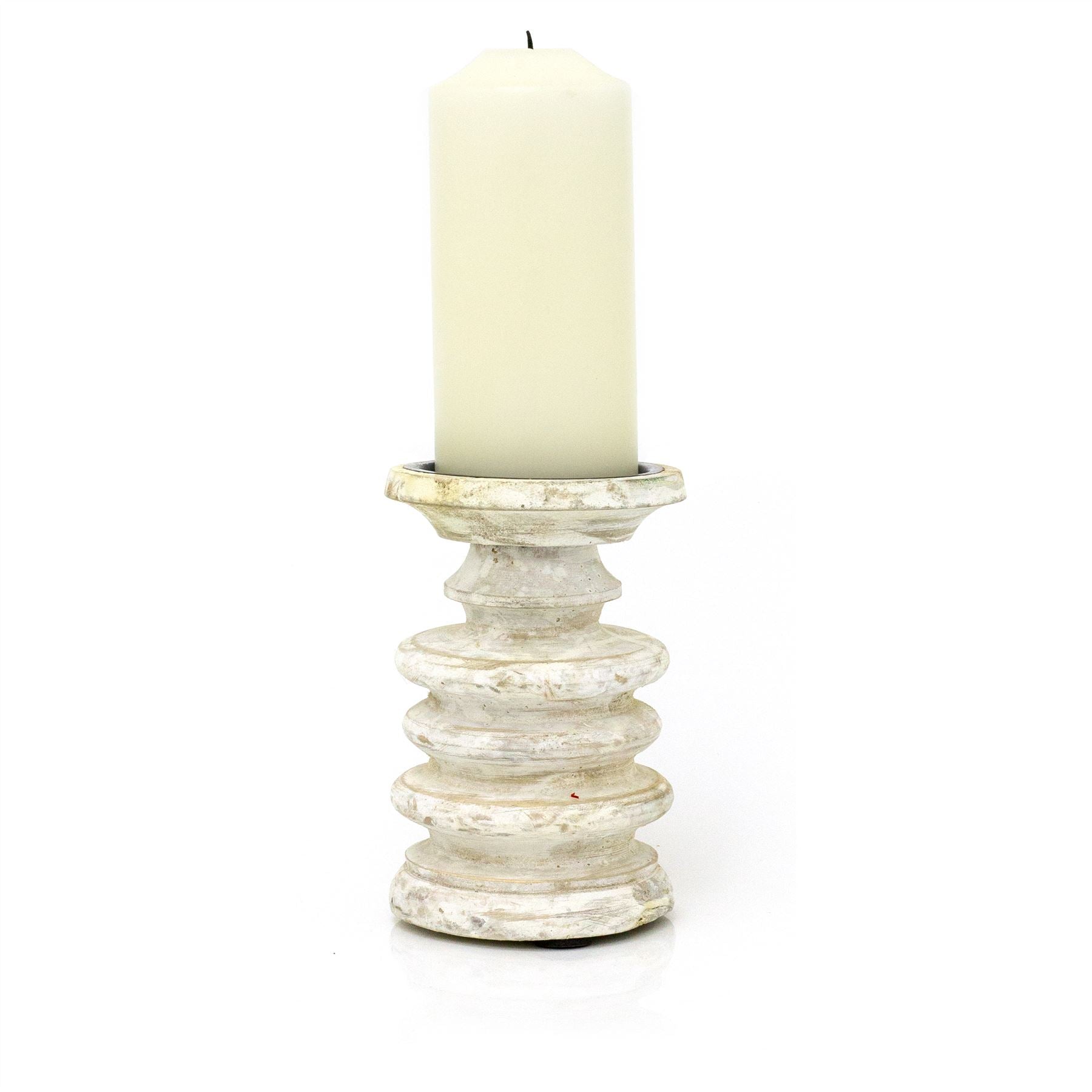 PILLAR CANDLESTICK | This traditional style candlestick is sure to add character and style to your home. Made from natural, white washed turned wood, finished with a rustic feel they are on trend with everything distressed and vintage