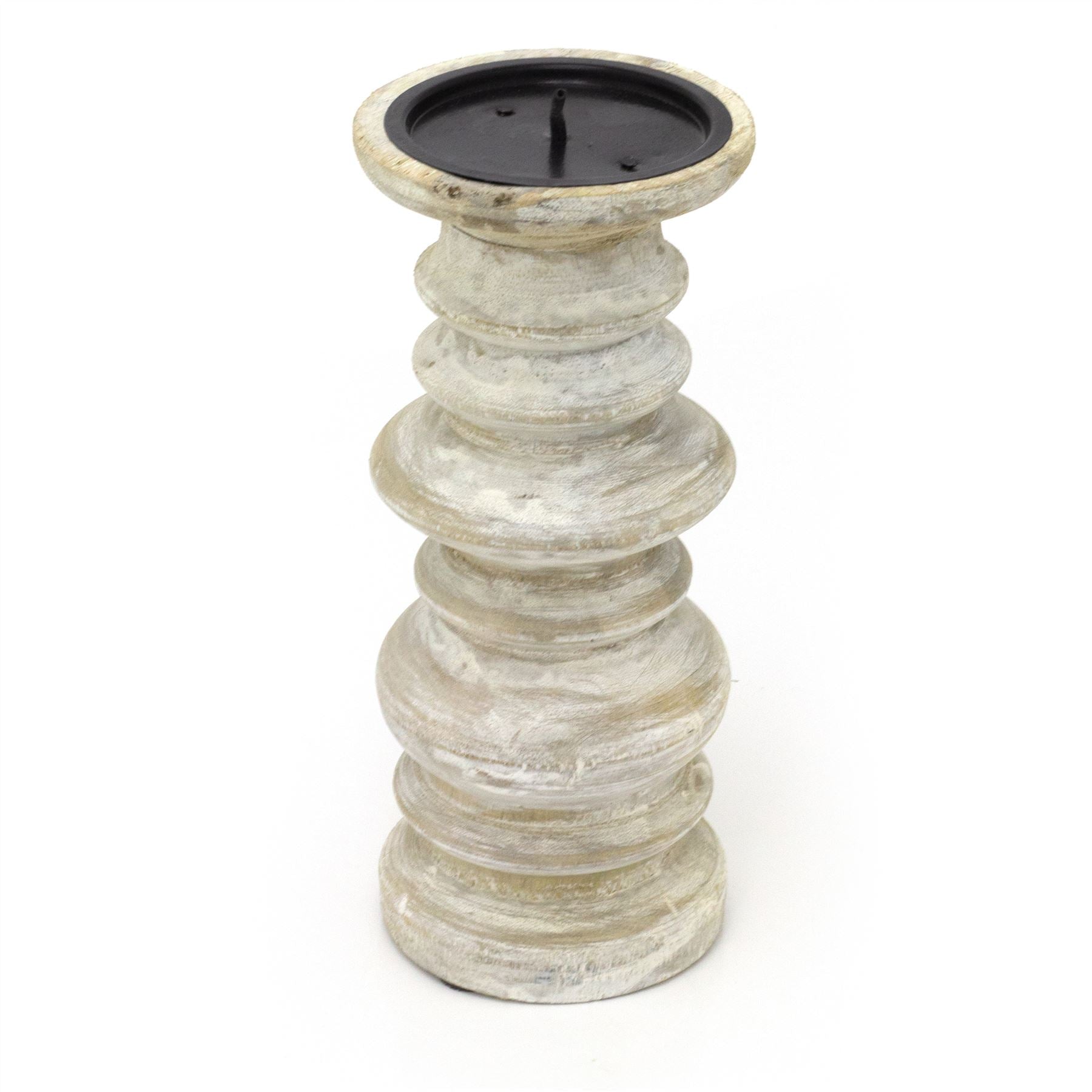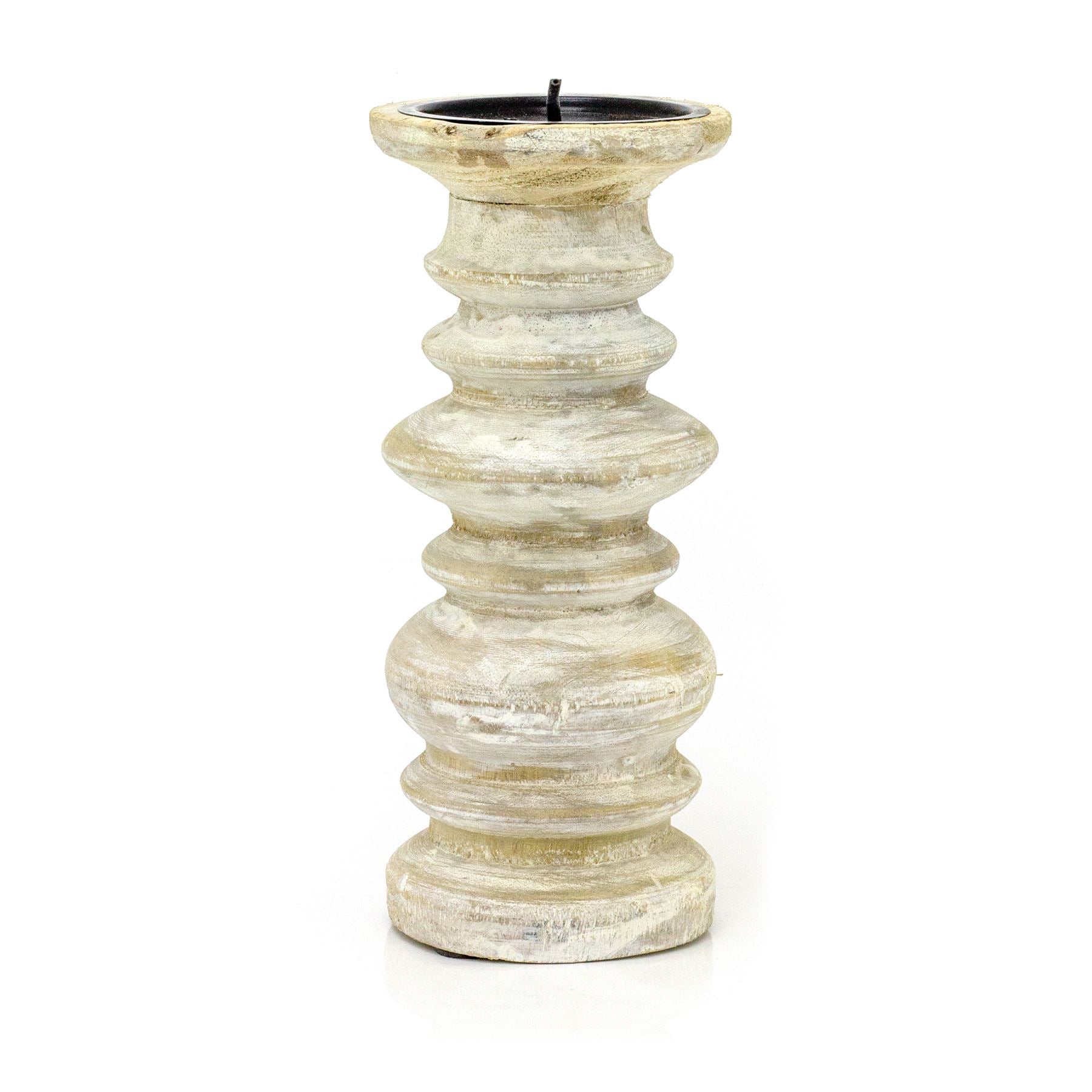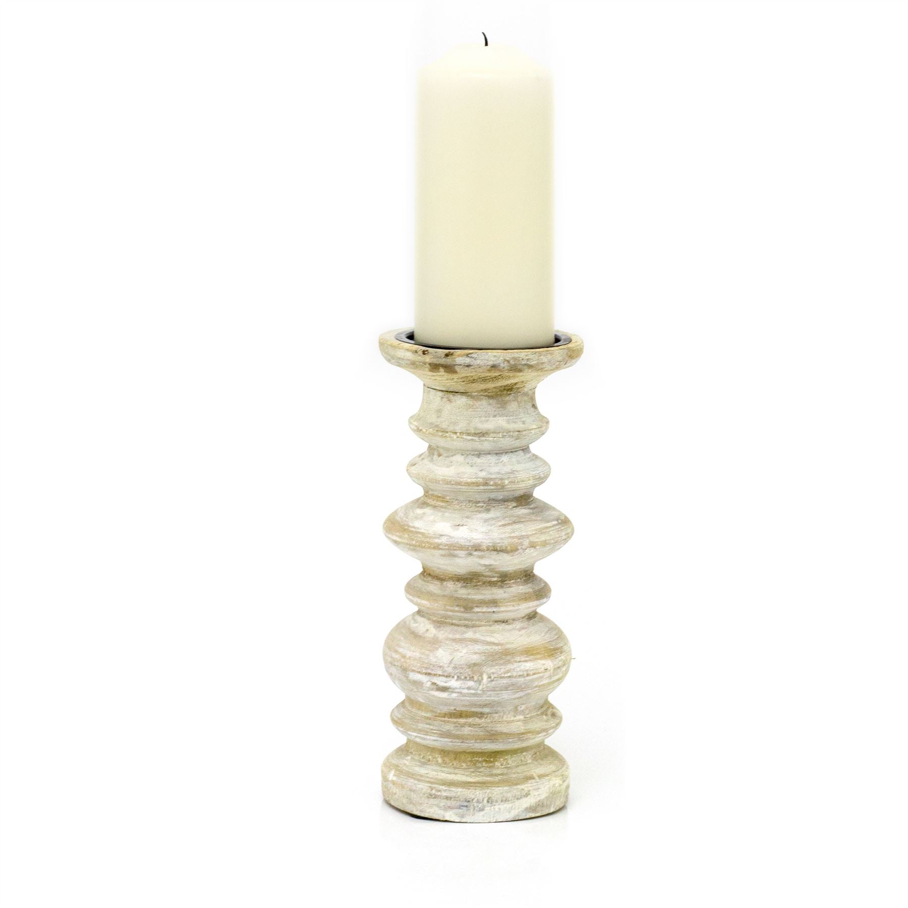 PILLAR CANDLESTICK | This traditional style candlestick is sure to add character and style to your home. Made from natural, white washed turned wood, finished with a rustic feel they are on trend with everything distressed and vintage