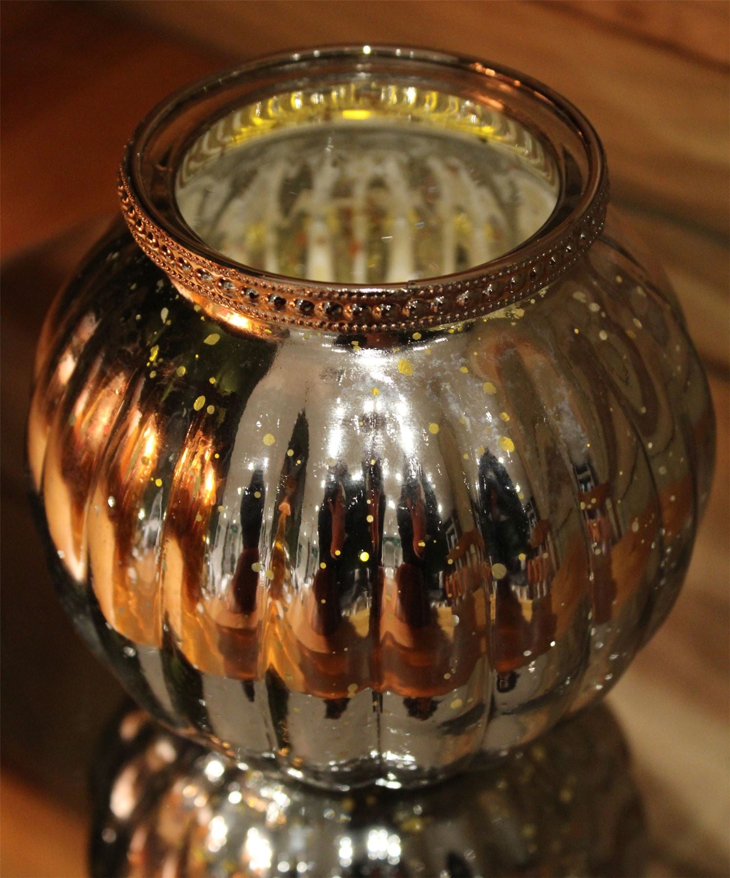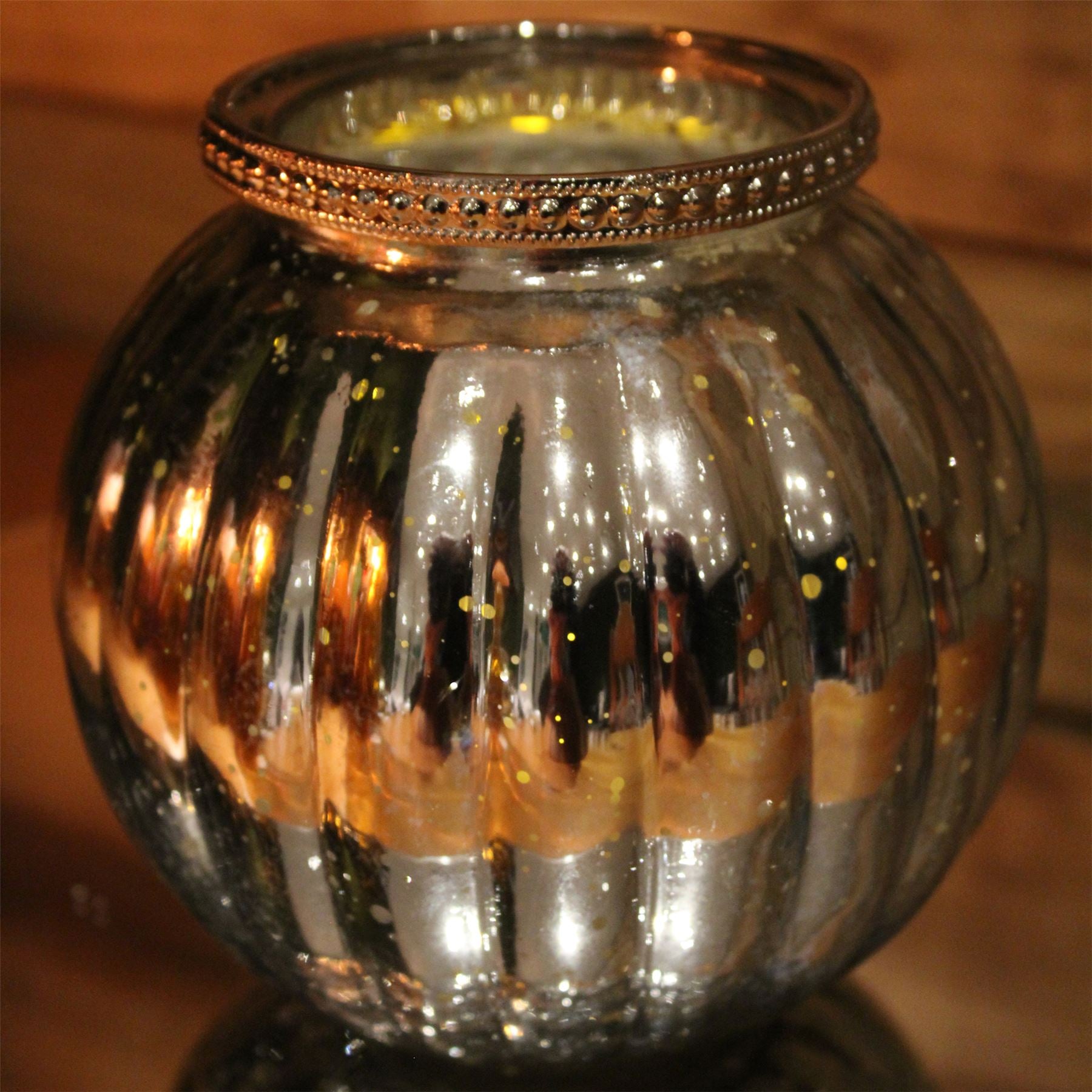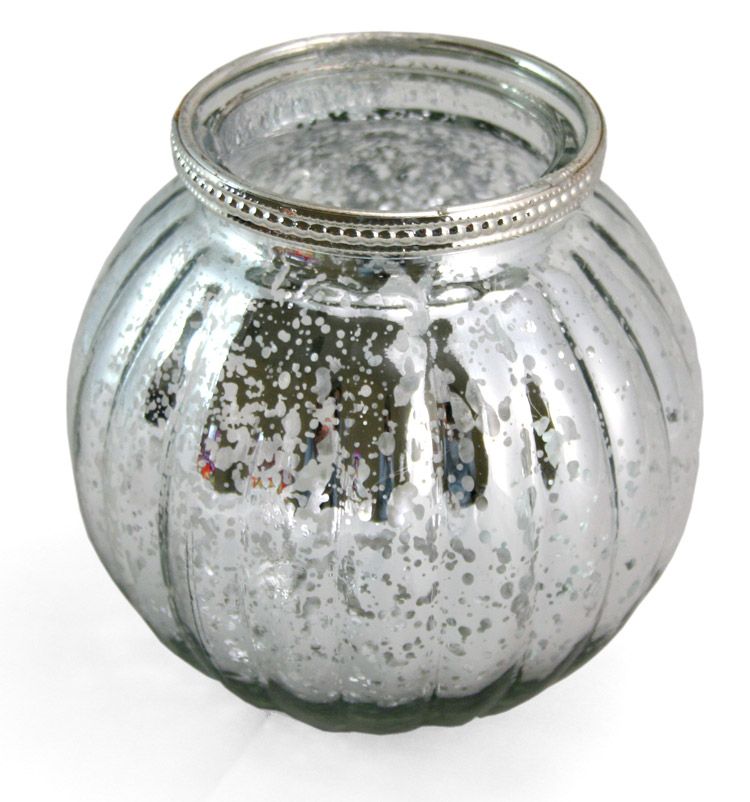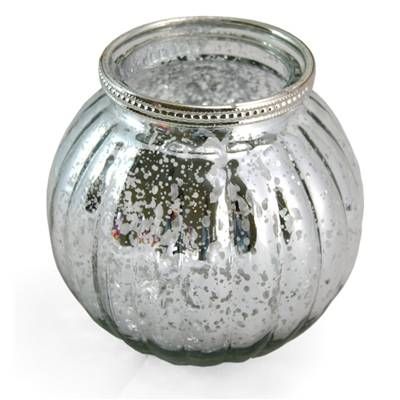 Beautiful mottled mercury effect silver coloured glass tealight holder