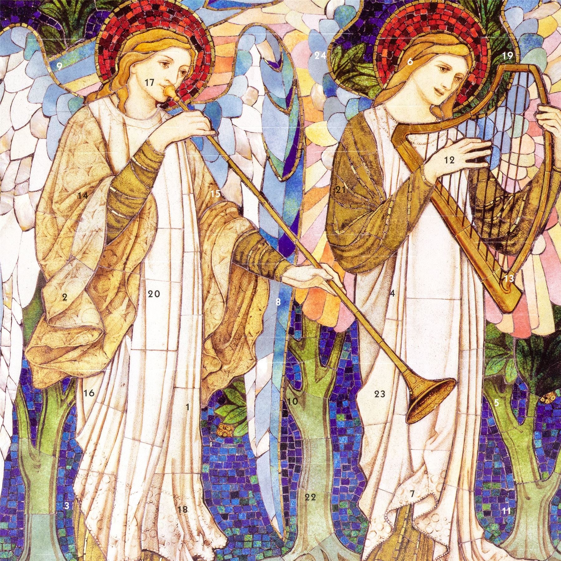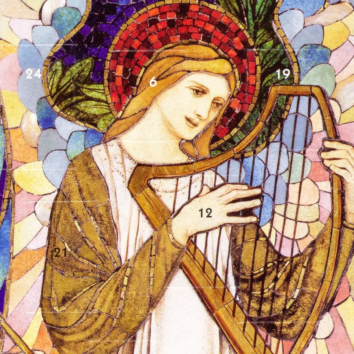 ADVENT CALENDAR | This beautiful advent calendar of two delicate angels, depicted in exquisite detail, playing the flageolet and harp. Their celestial image imparts a sense of tranquillity, inviting you to immerse yourself in the sacred stories behind each door