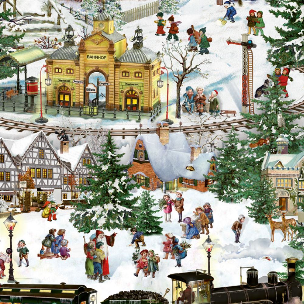 TRADITIONAL ADVENT CALENDAR | This beautiful Advent calendar invites you on a train journey through a spectacular alpine village scene. A classic card design, featuring beautiful glittery detail throughout which really brings the Advent calendar to life