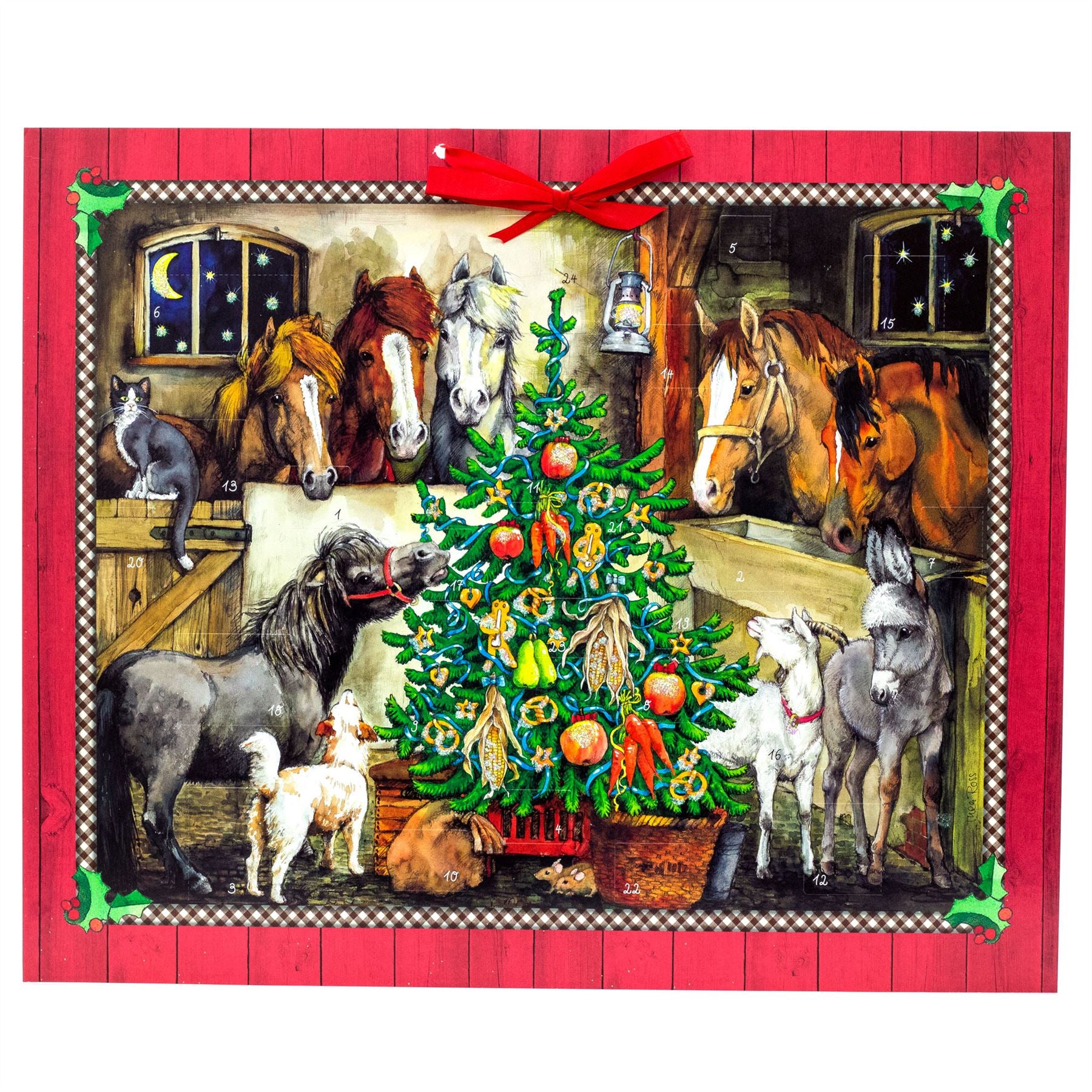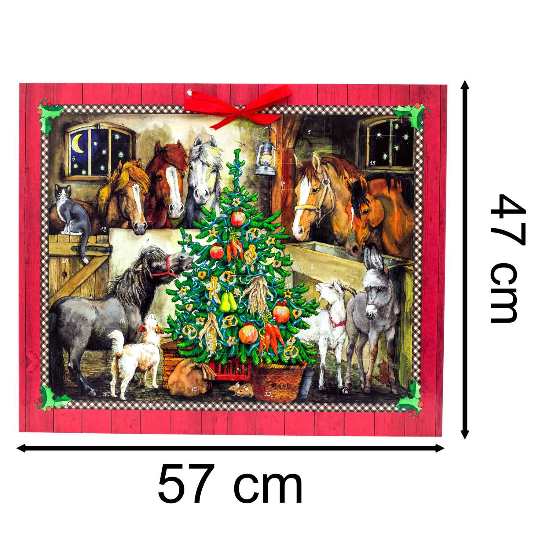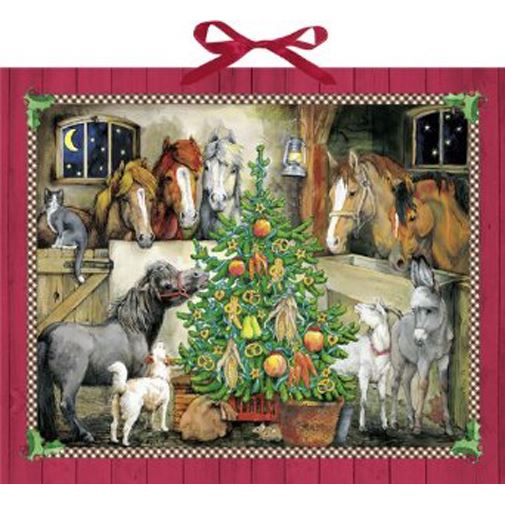 Bring the magic of Christmas to life with the Christmas at the Stables Advent calendar. This large, traditional-style calendar features a beautifully illustrated festive horse barn that will captivate both young and old. Each day reveals a new part of the joyful Christmas scene, this charming Advent calendar is perfect for horse enthusiasts and makes a delightful addition to your holiday traditions