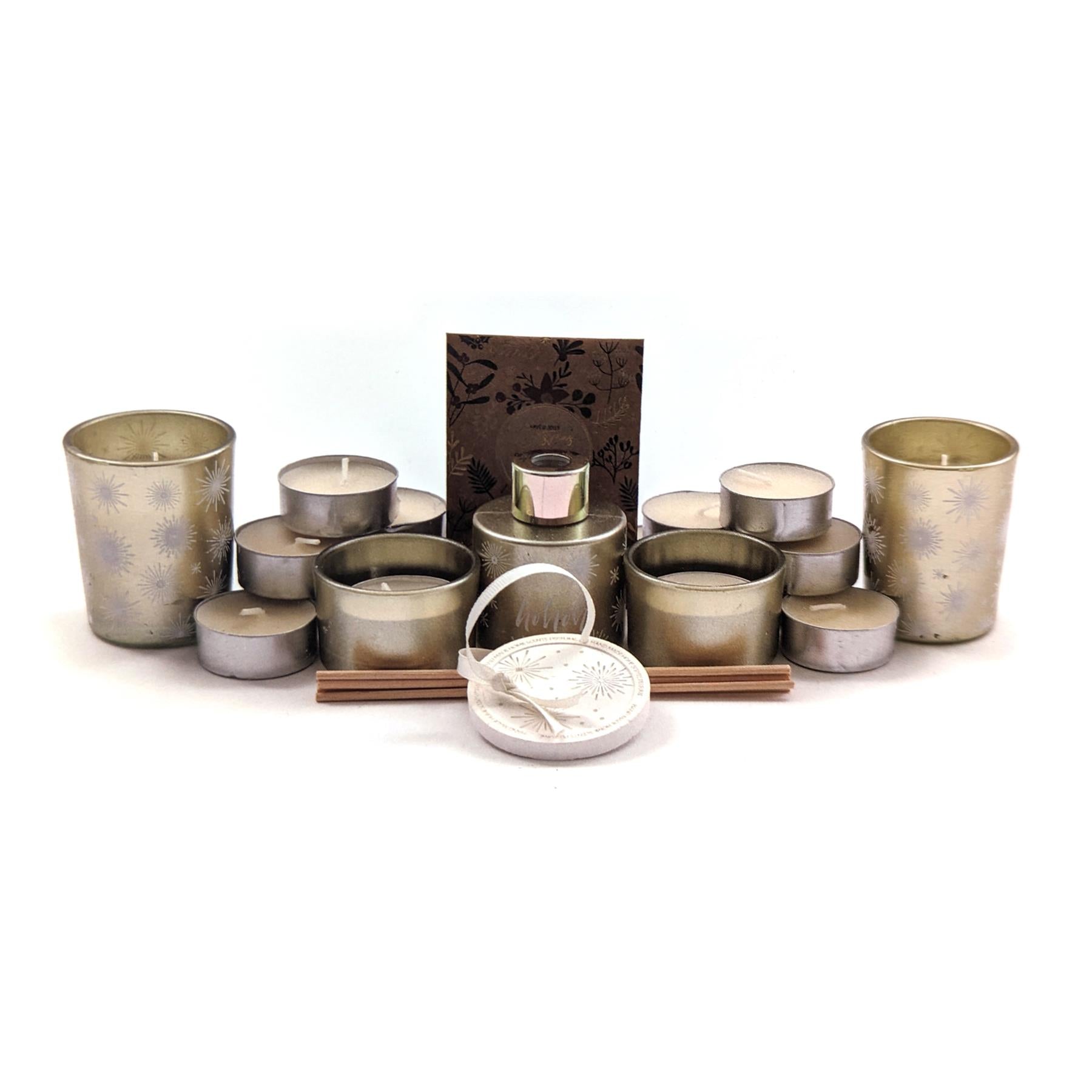 CANDLE ADVENT CALENDAR | Our Advent calendar comes with an array of candle-related items to brighten your home. It includes a diffuser, reeds, fragrance sachet, 2 wax-filled candle pots, 2 glass tealight holders, and 16 tea lights. With each passing day, you'll unwrap a new surprise to enjoy throughout the Christmas season