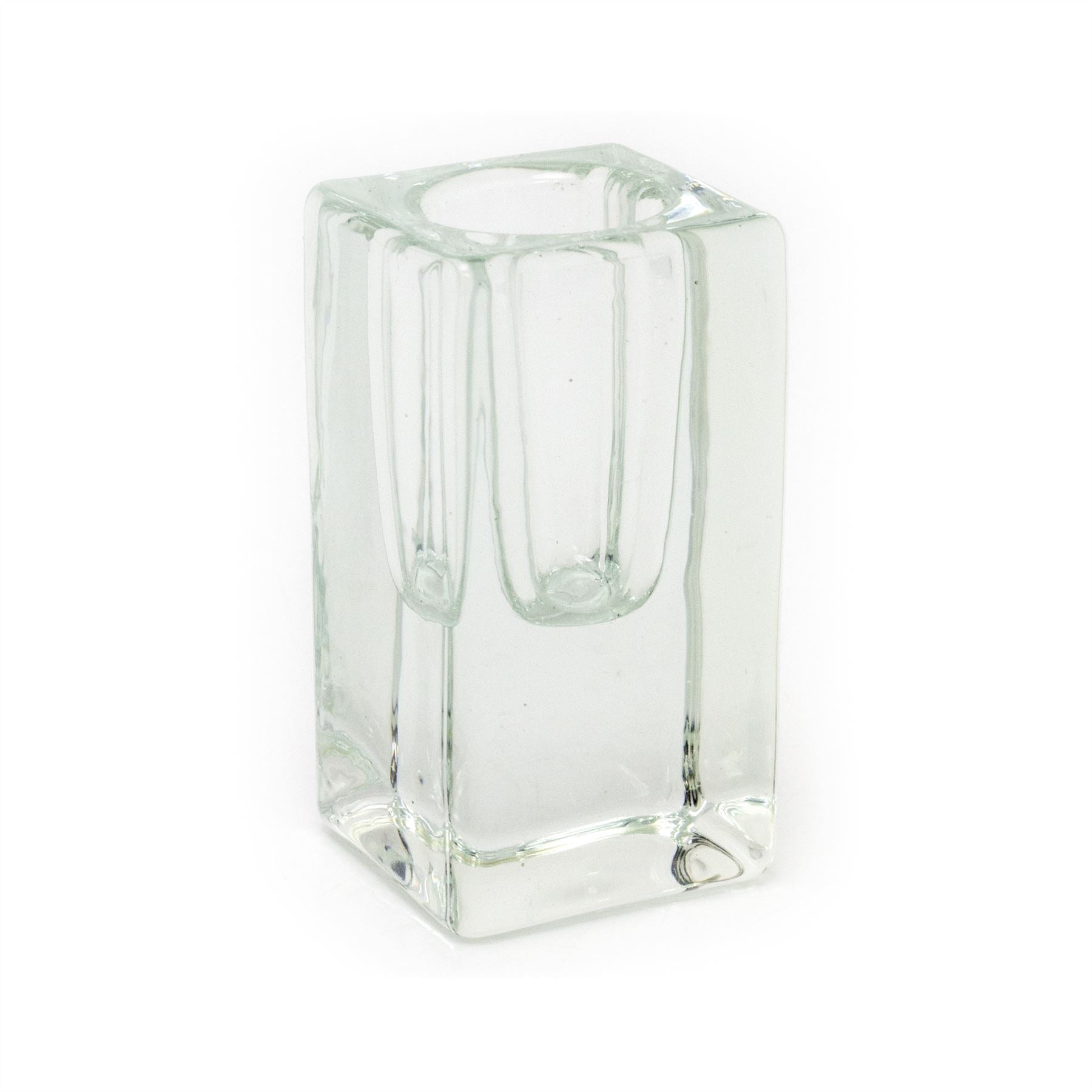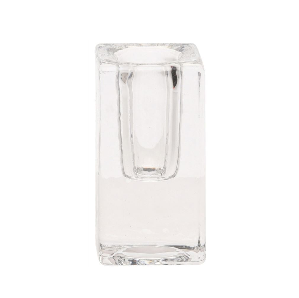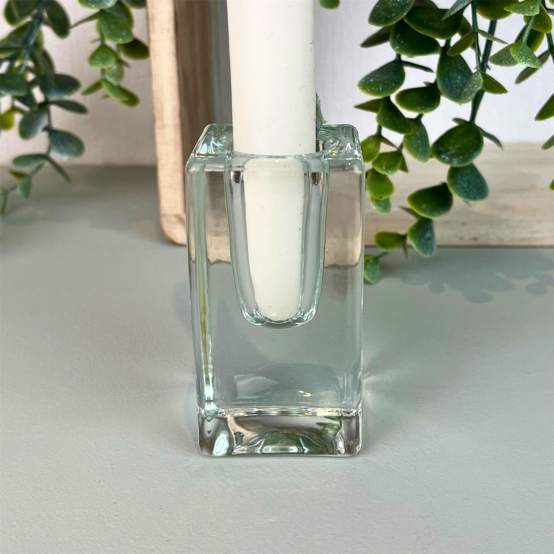 Clear Glass Candlestick | Square Glass Taper Dinner Candle Holder - 8cm
