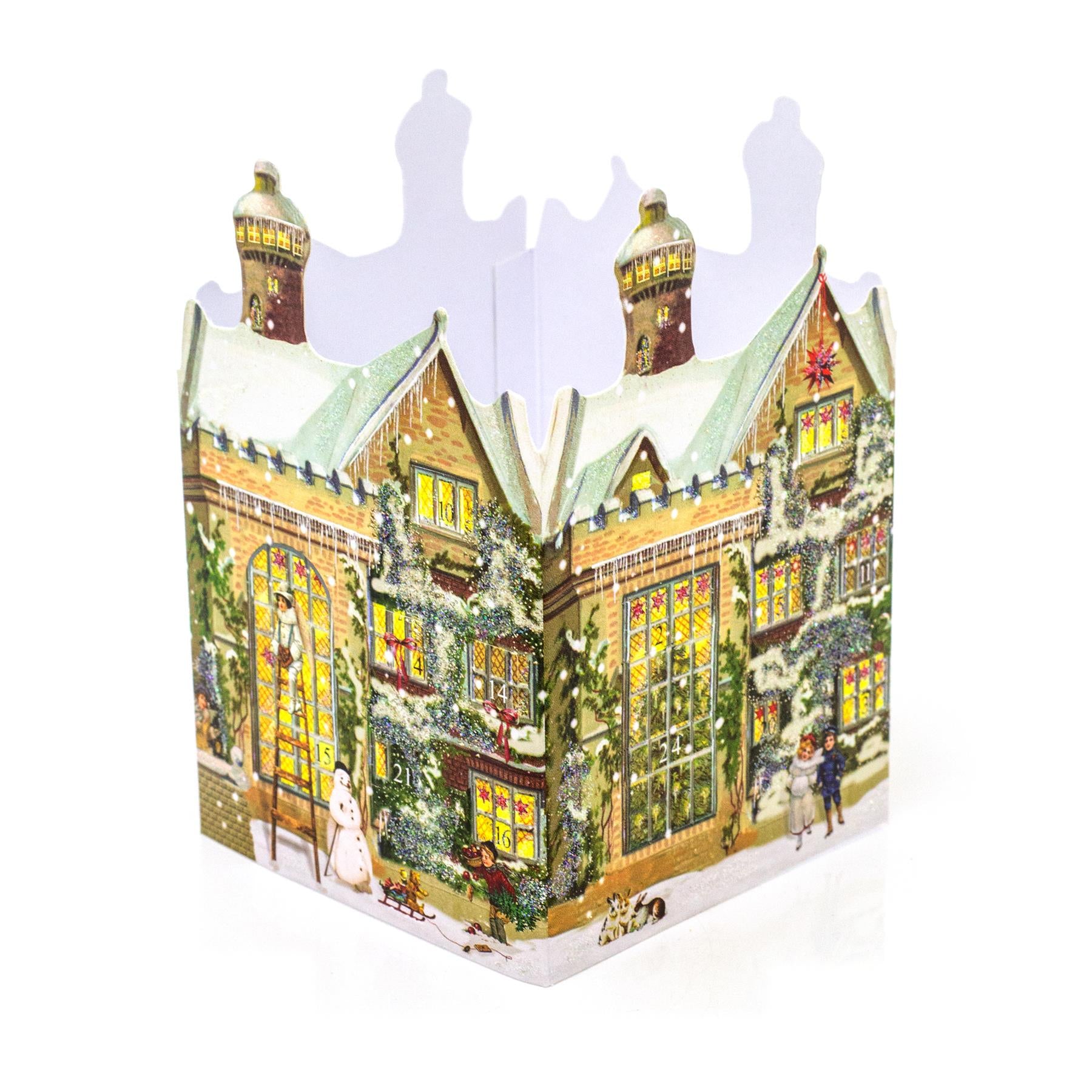 Deluxe Mini Advent Calendar Christmas Card - Nostalgic House Tealight Lantern - Manor House