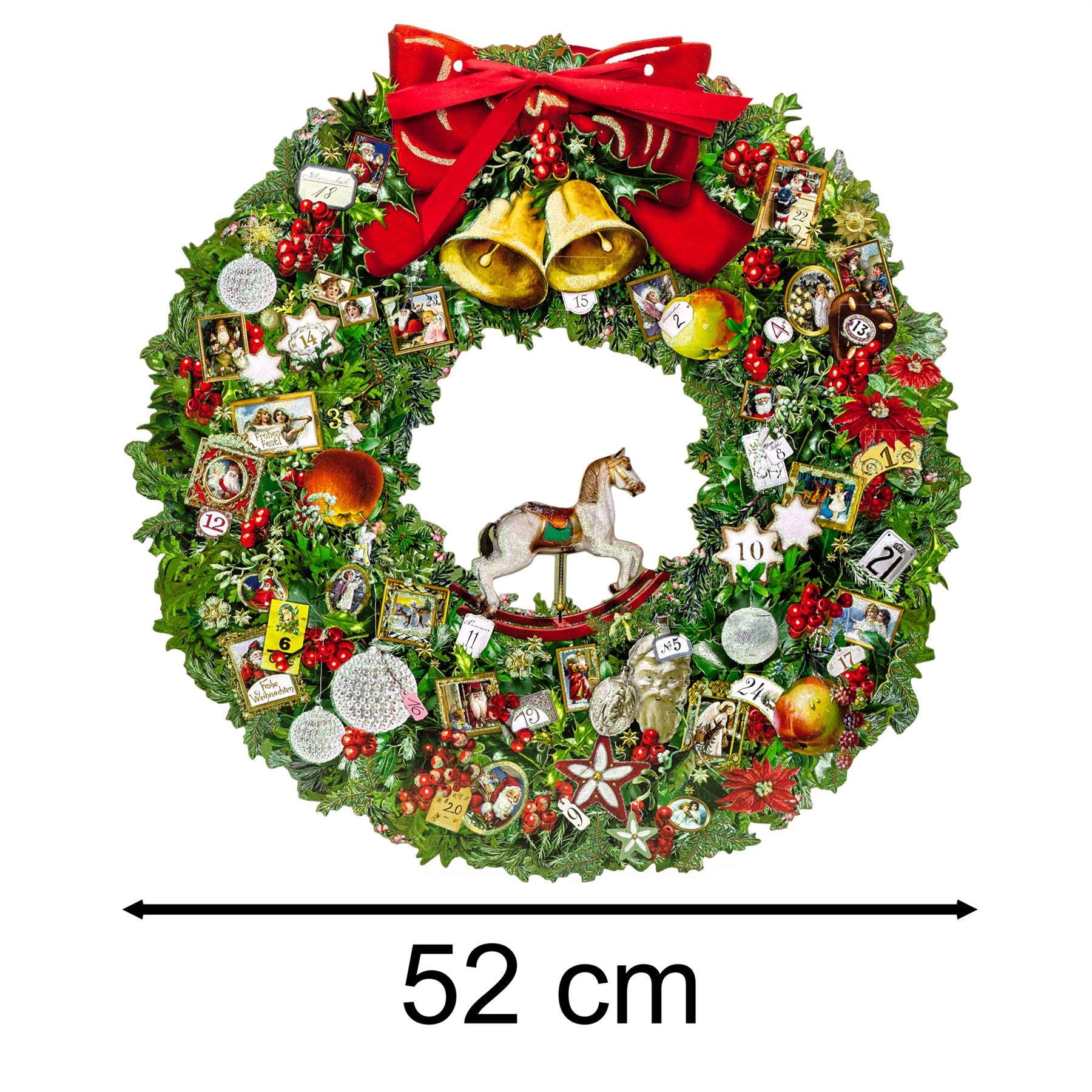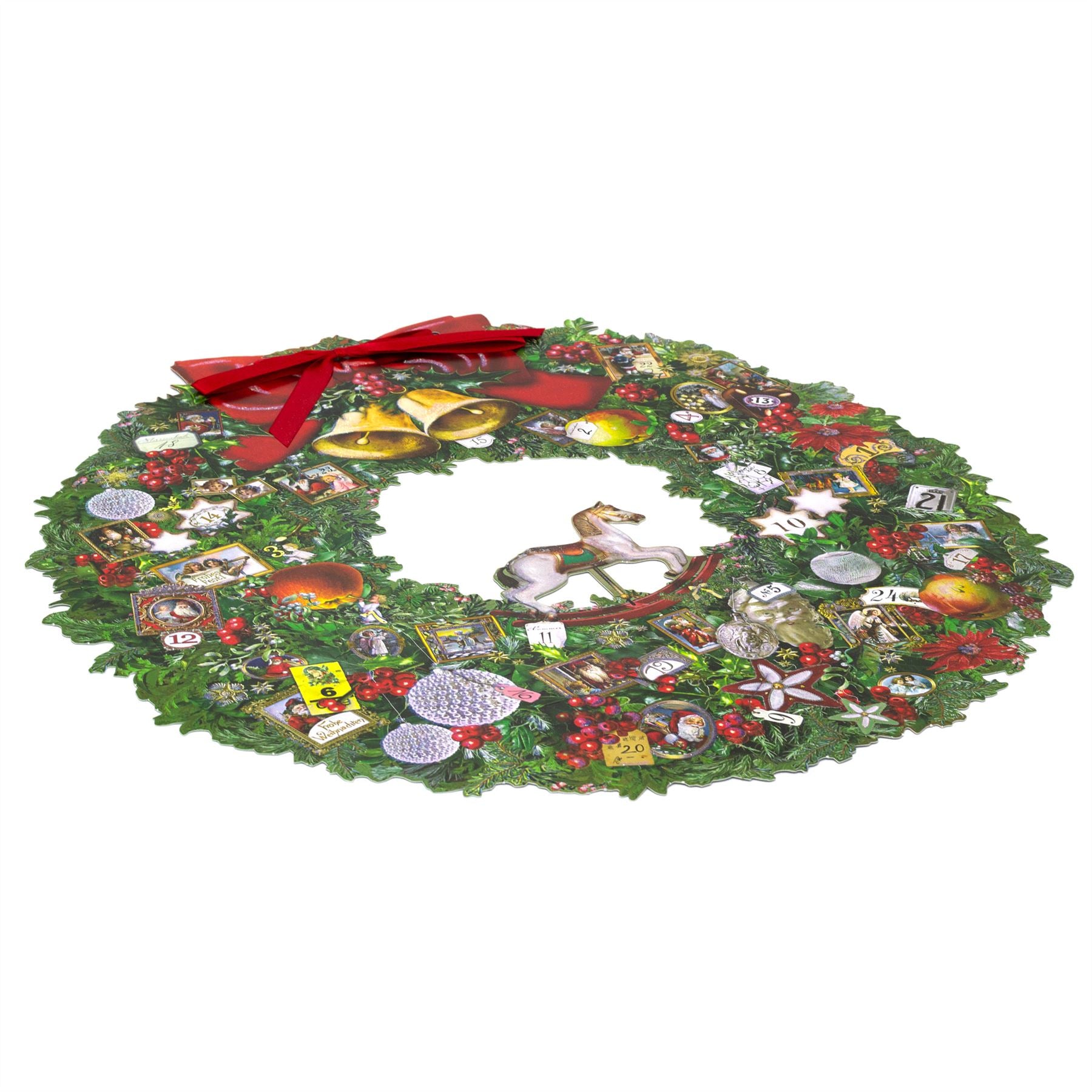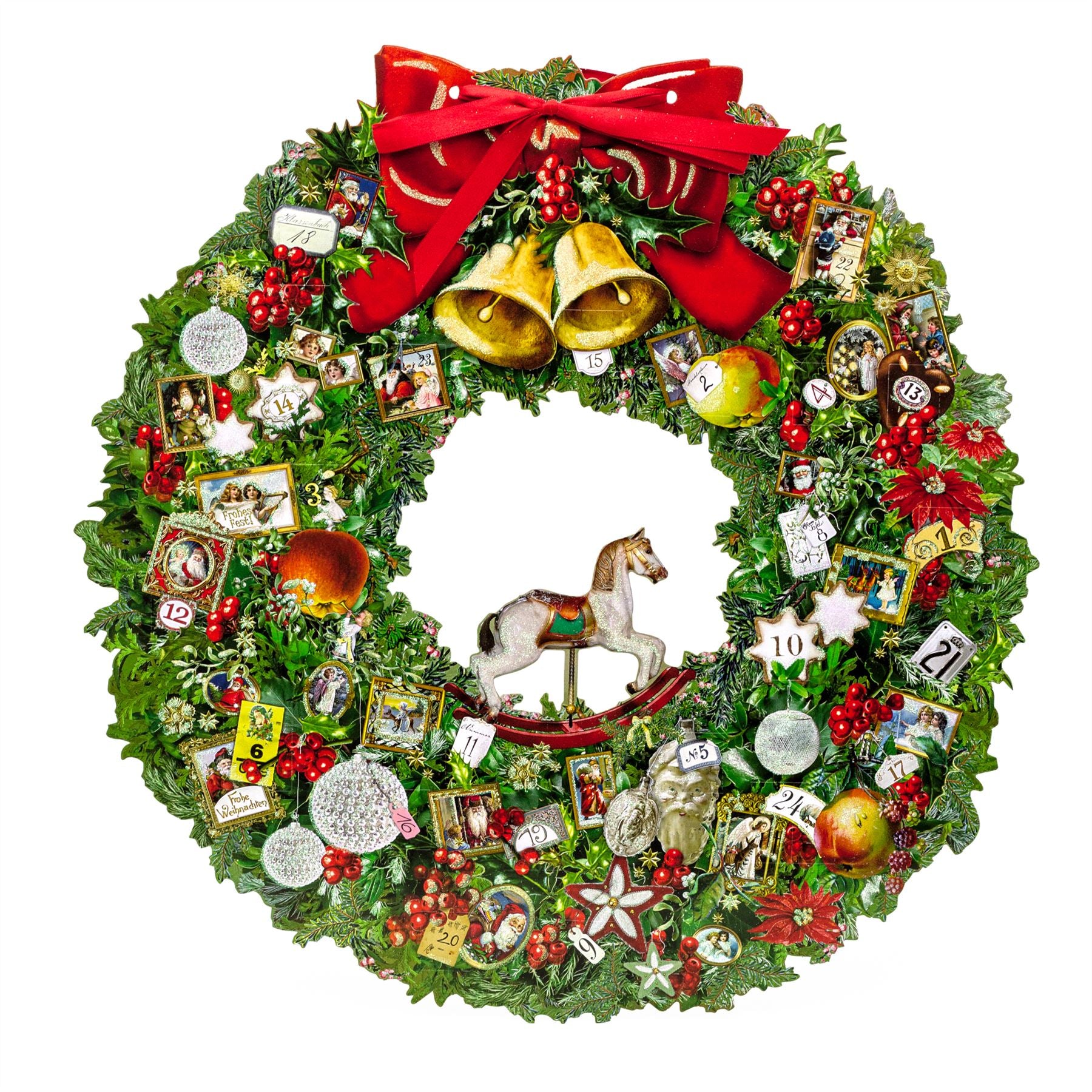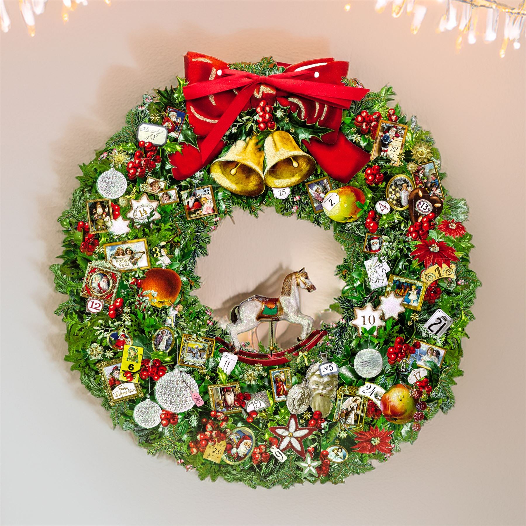WREATH ADVENT CALENDAR | A large hanging advent calendar shaped like a Christmas wreath, filled with festive charm and glittering surprises