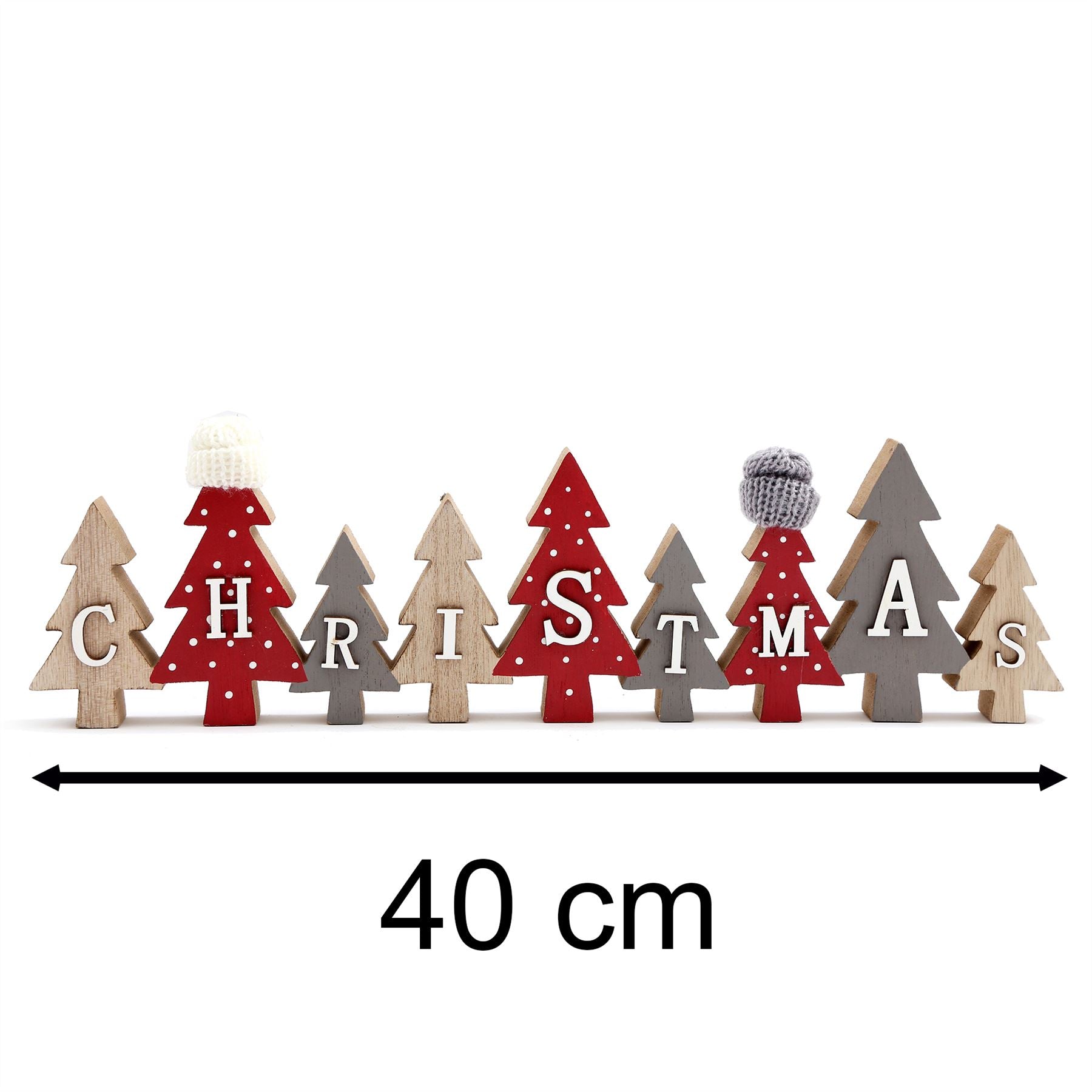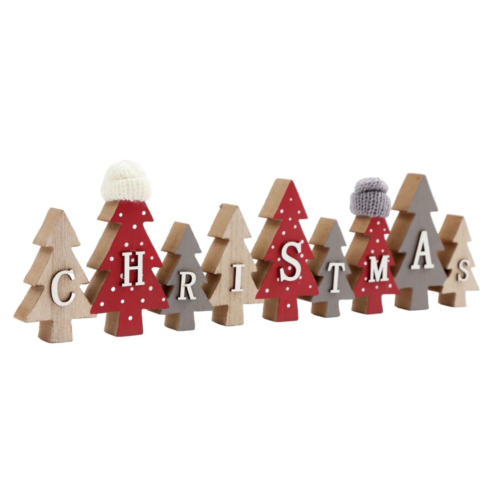 MERRY CHRISTMAS SIGN | This whimsical word block showcases a row of festive trees, each adorned with a letter spelling out "Christmas," creating a delightful focal point for your holiday decor