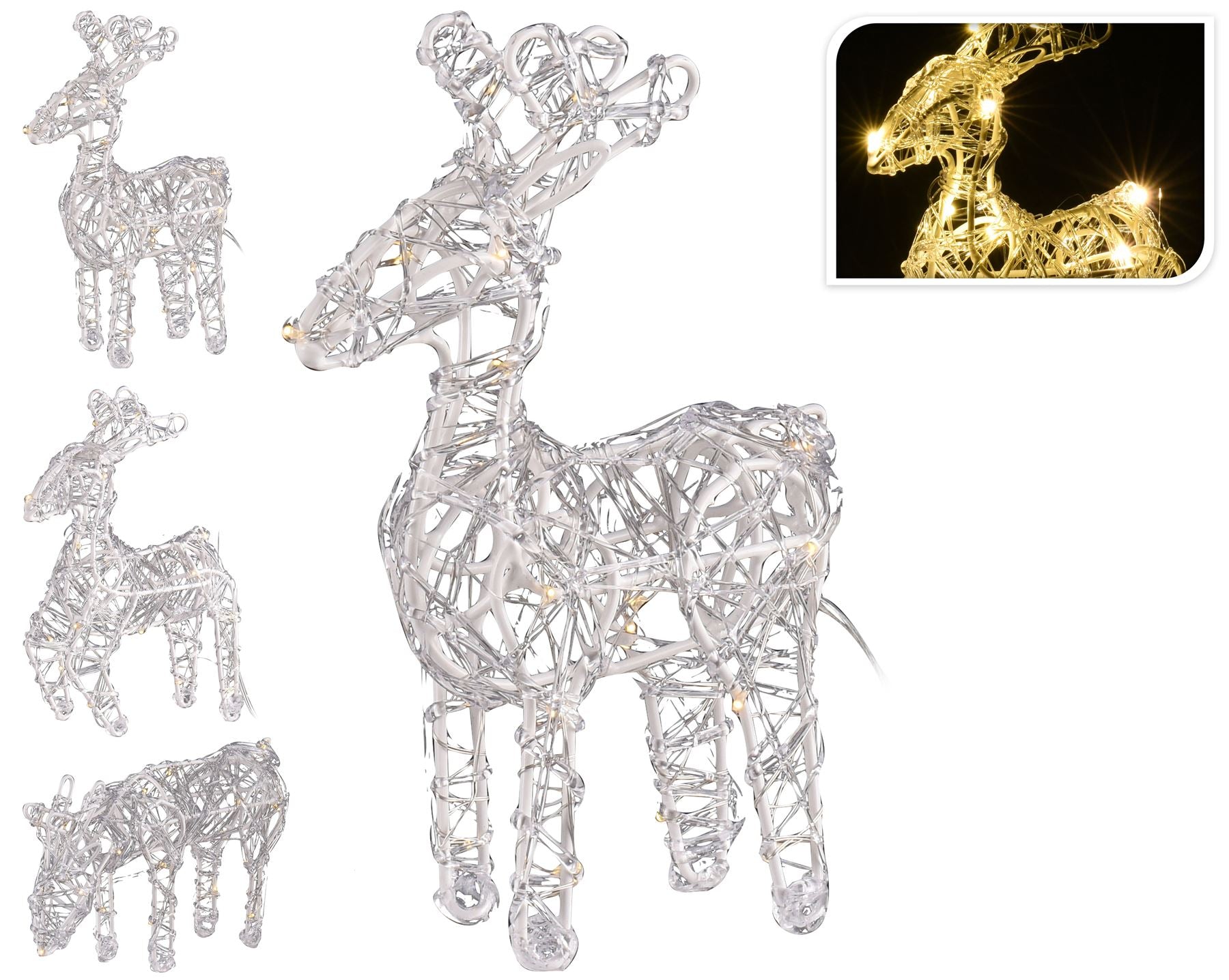 REINDEER LIGHTS: 20 LED lights create a glamorous decorative piece. Clear white wire micro string fairy lights are artfully interwoven around the 3D white metal sculpted framework, created an attractive crystalline plastic rattan style weave