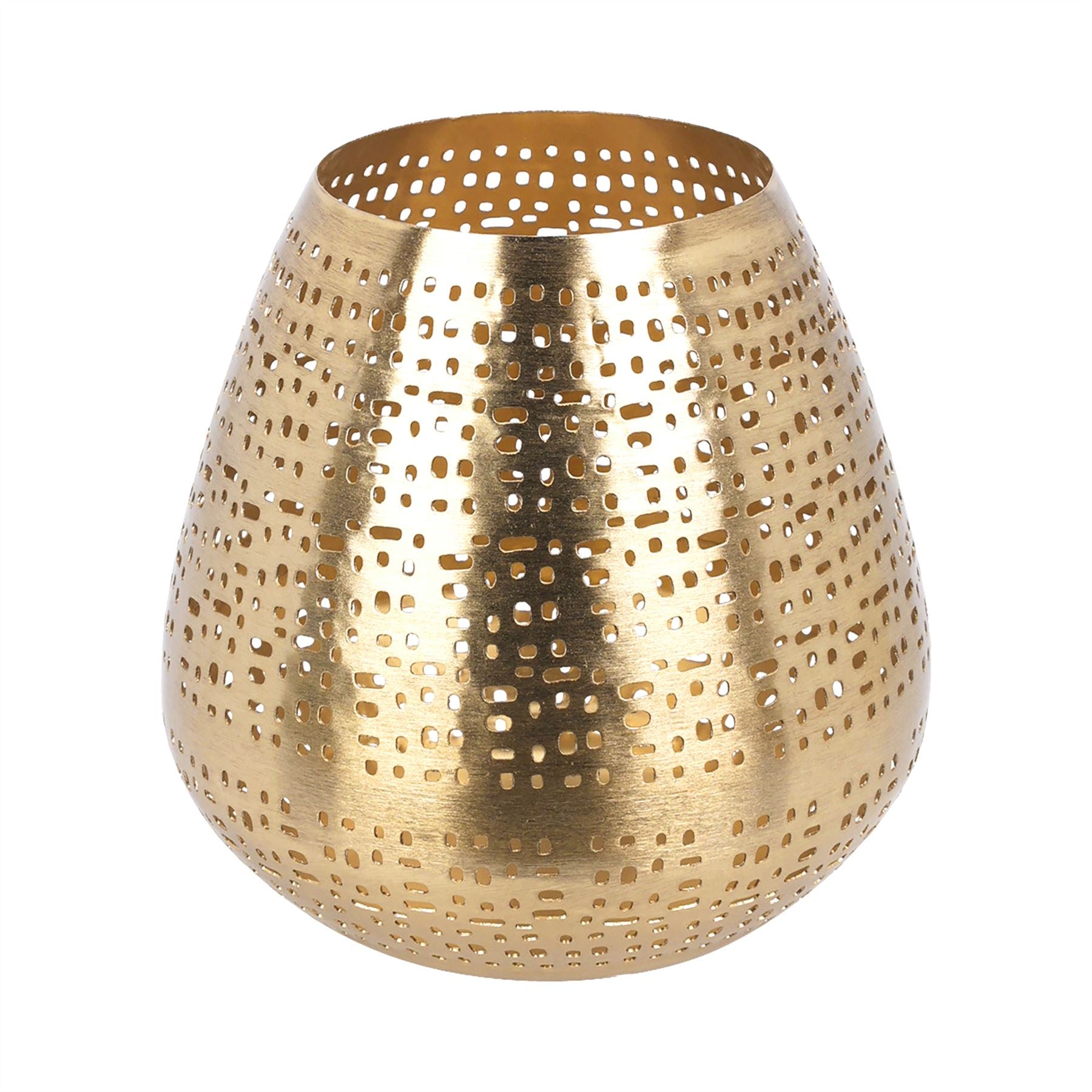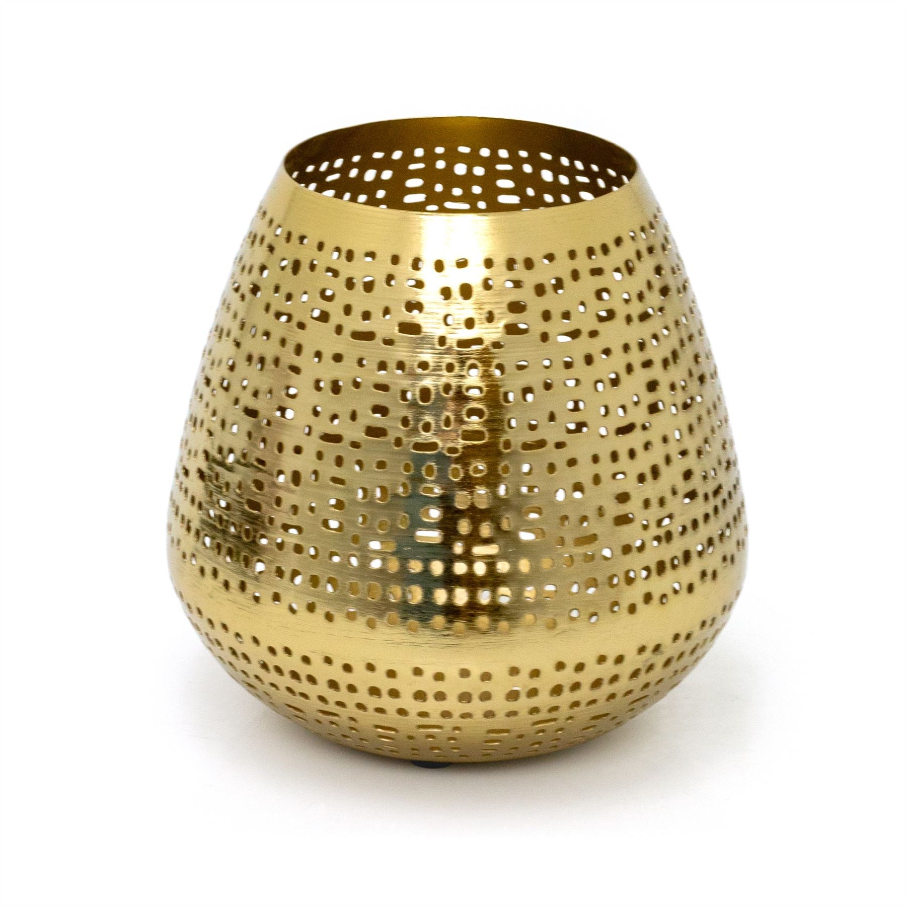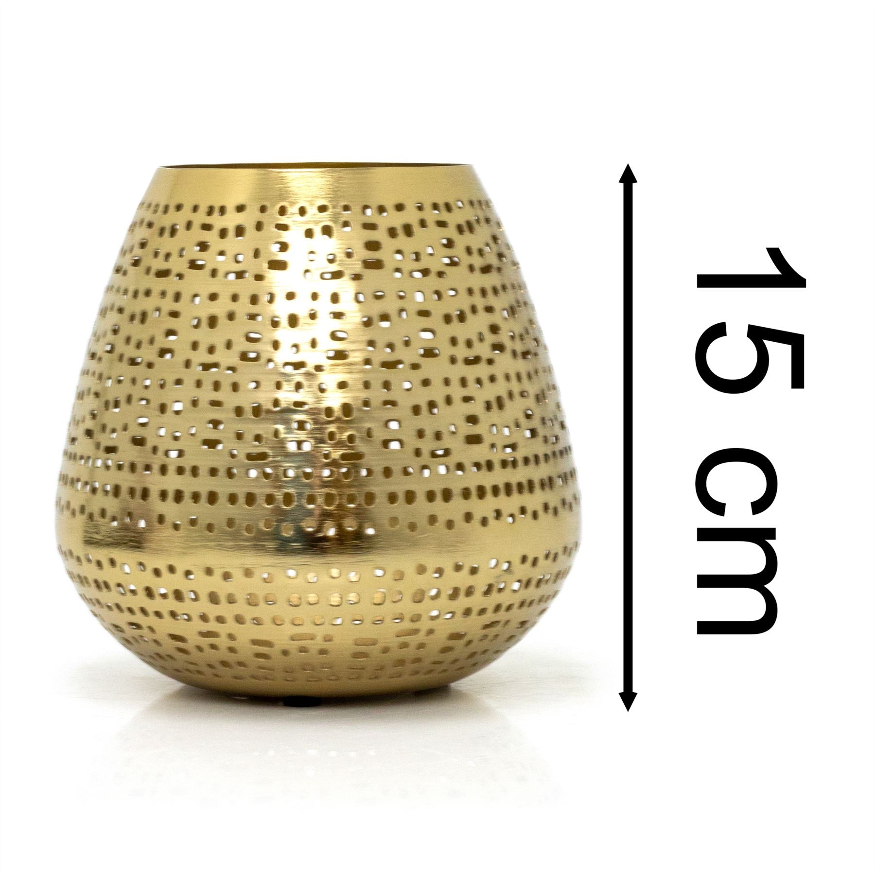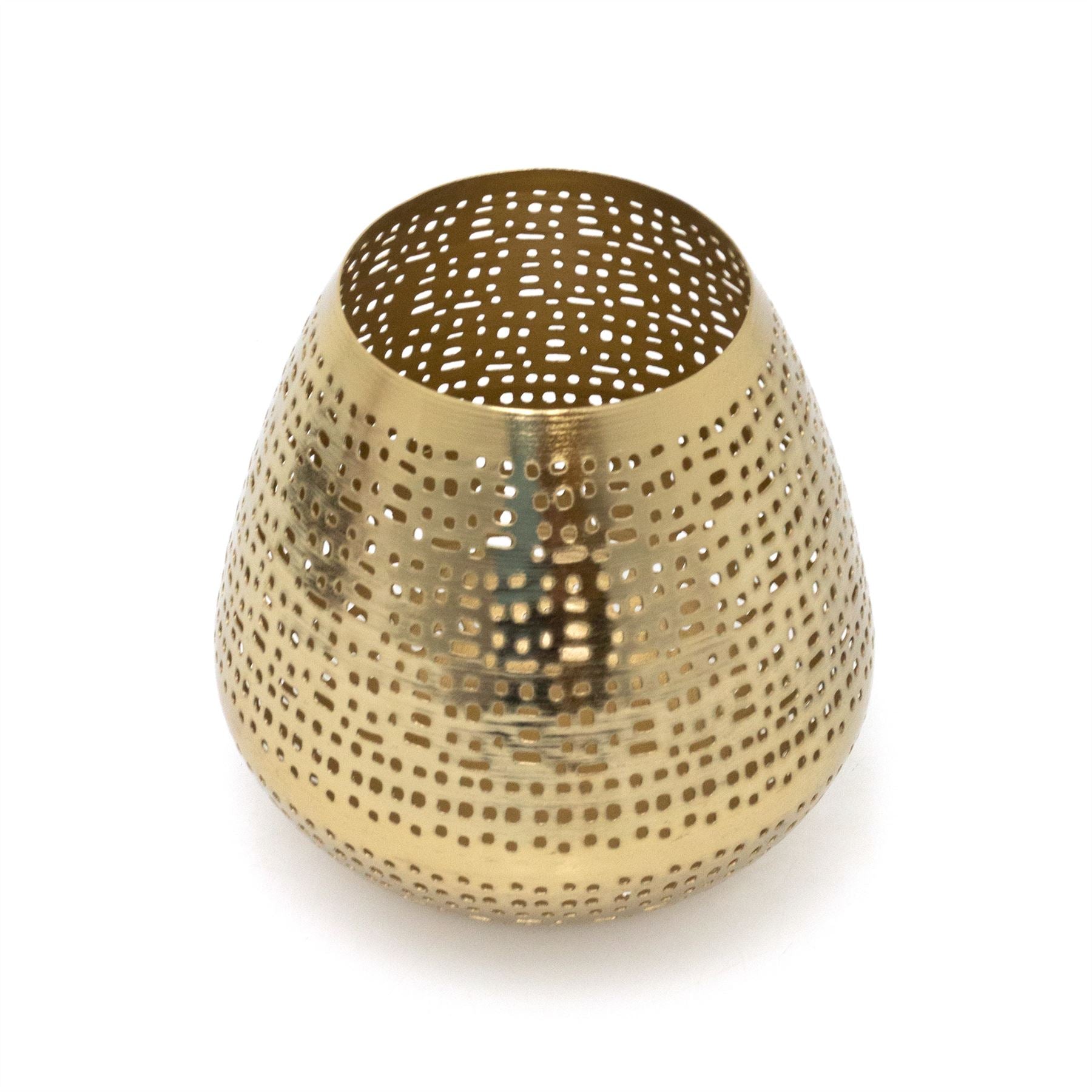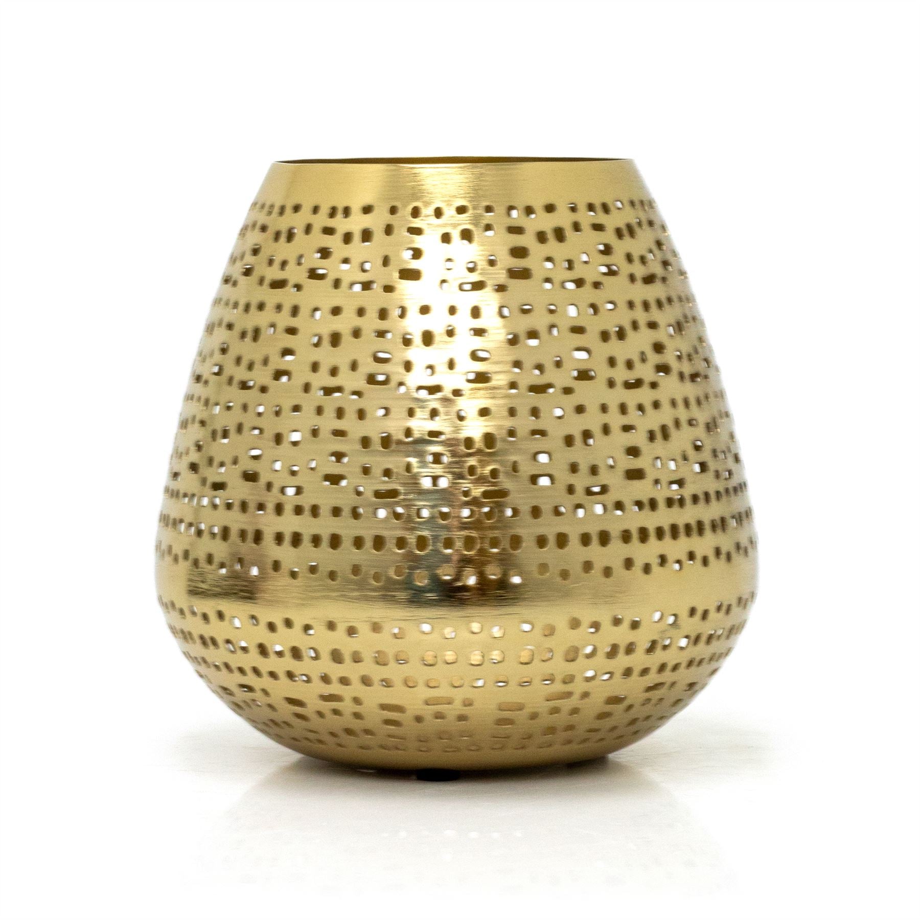 VERSATILE DECORATIVE HOLDER | Featuring an antique gold matte finish and a beautifully intricate perforated pattern. ideal for adding subtle illumination to various spaces, from bathrooms to bedrooms, or even on the mantle