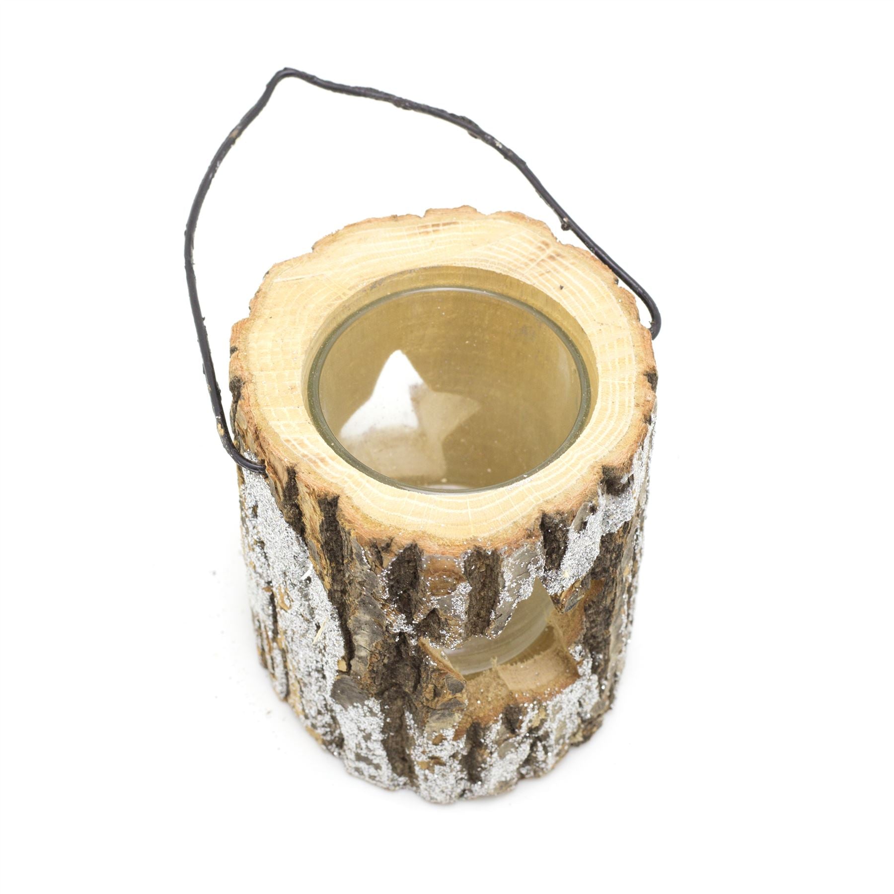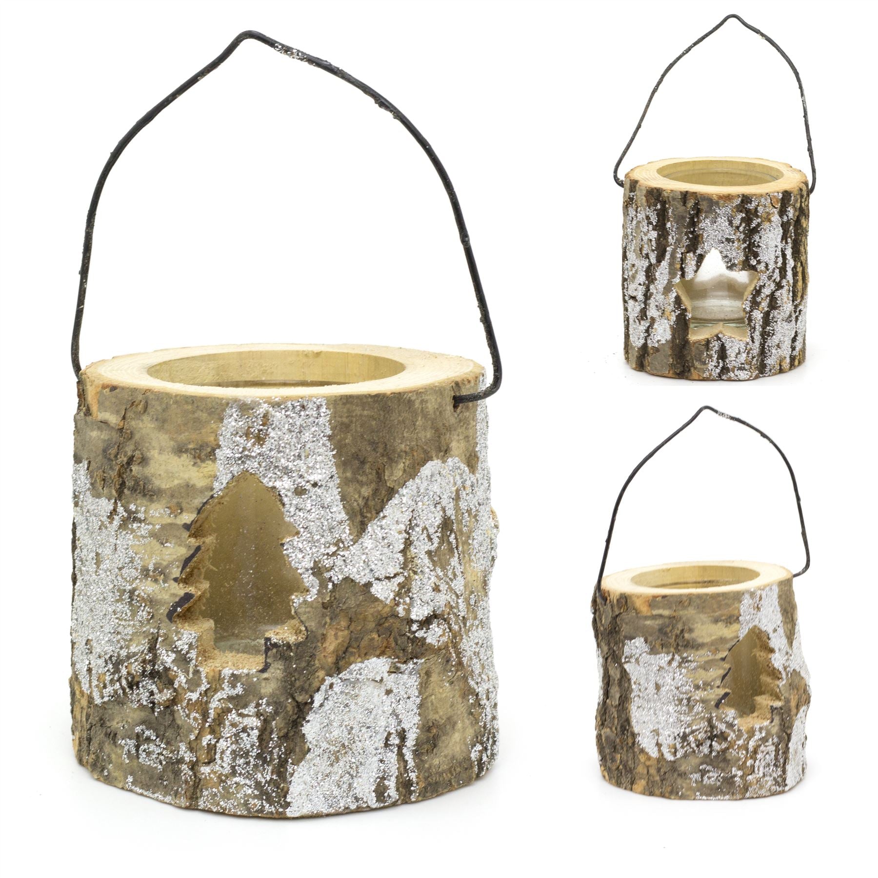 Natural Wood Christmas Tealight Candle Holder | Festive Rustic Wooden Tea Light Candle Pot | Xmas Lantern Tealight Votive Holder - Design Varies One Supplied