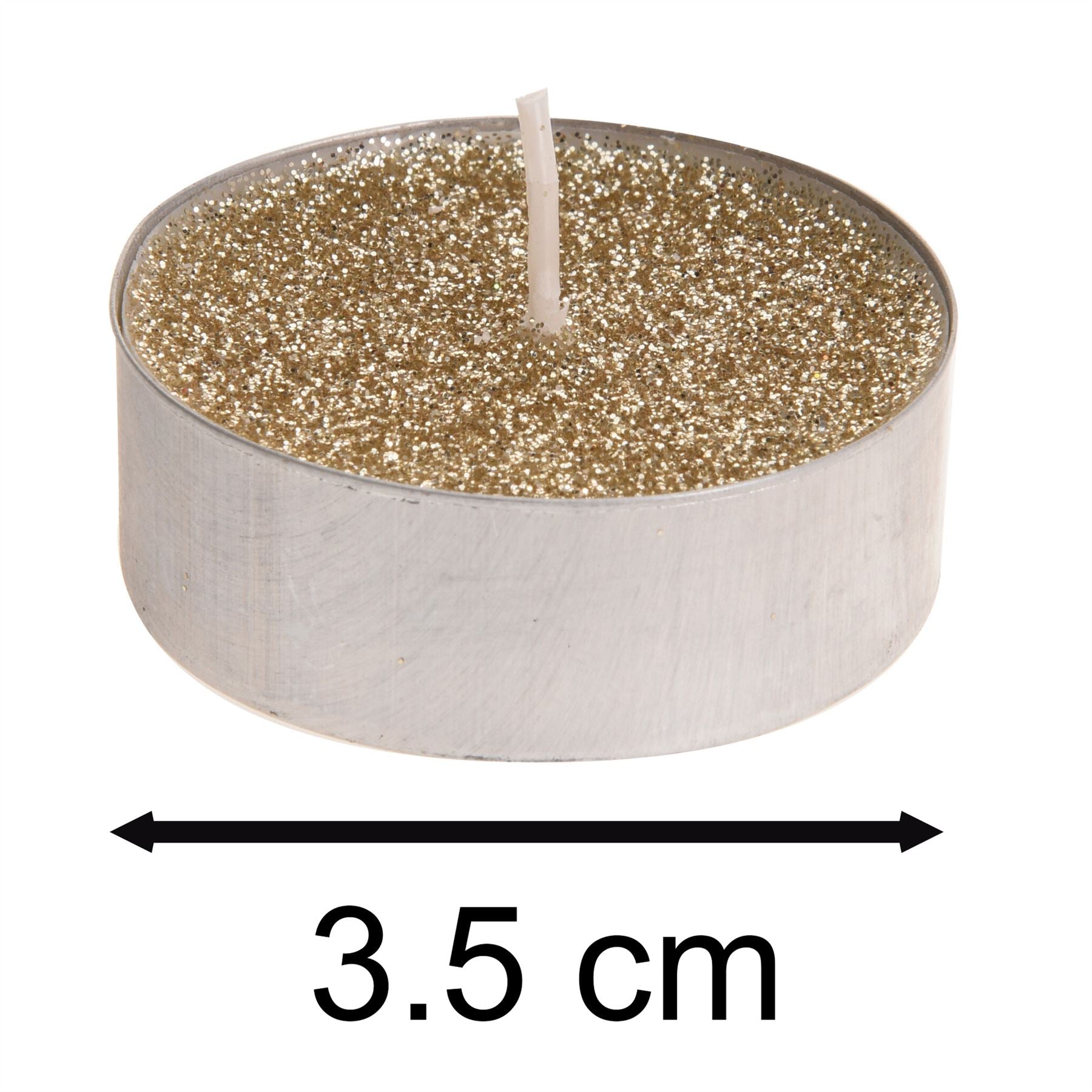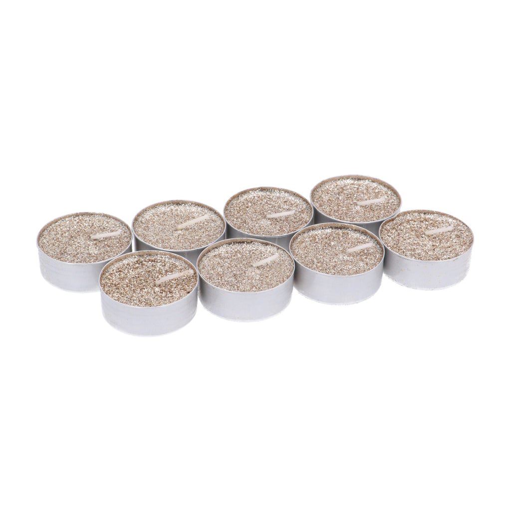 GLITTER CANDLES | Light up your space with a bit of golden magic and enjoy the sparkle! Each tealight is about 3.5cm in diameter. This set contains 8 pieces