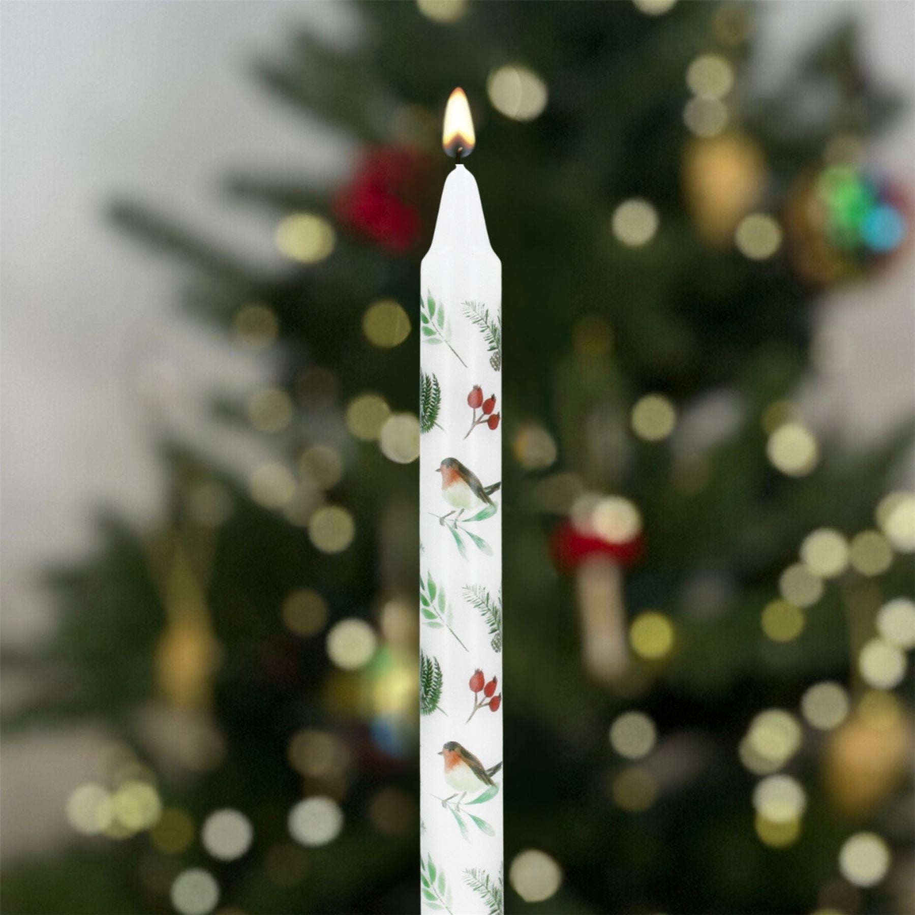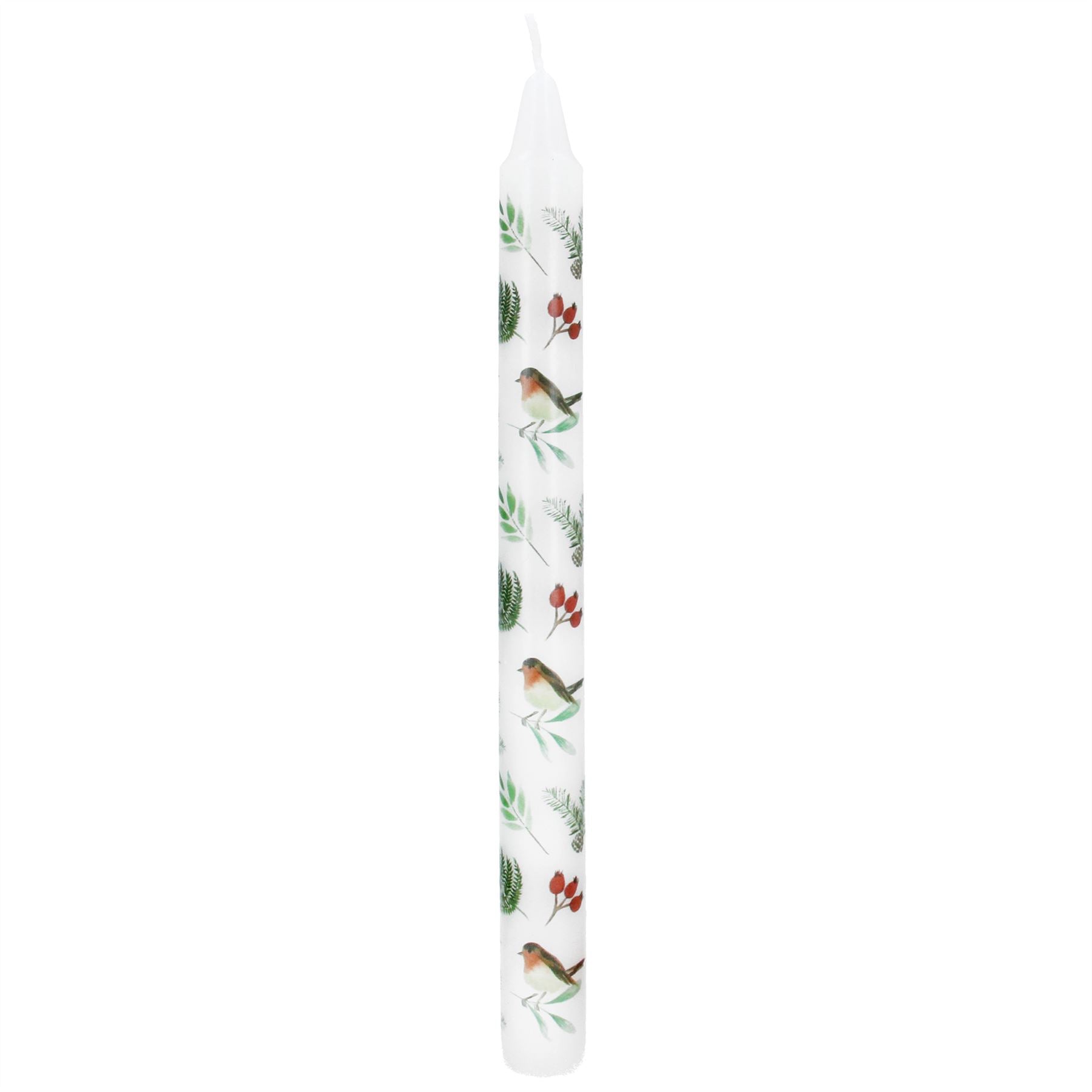 Robins & Rosehips Dinner Candle | Tall Unscented Taper Christmas Candle - 23cm