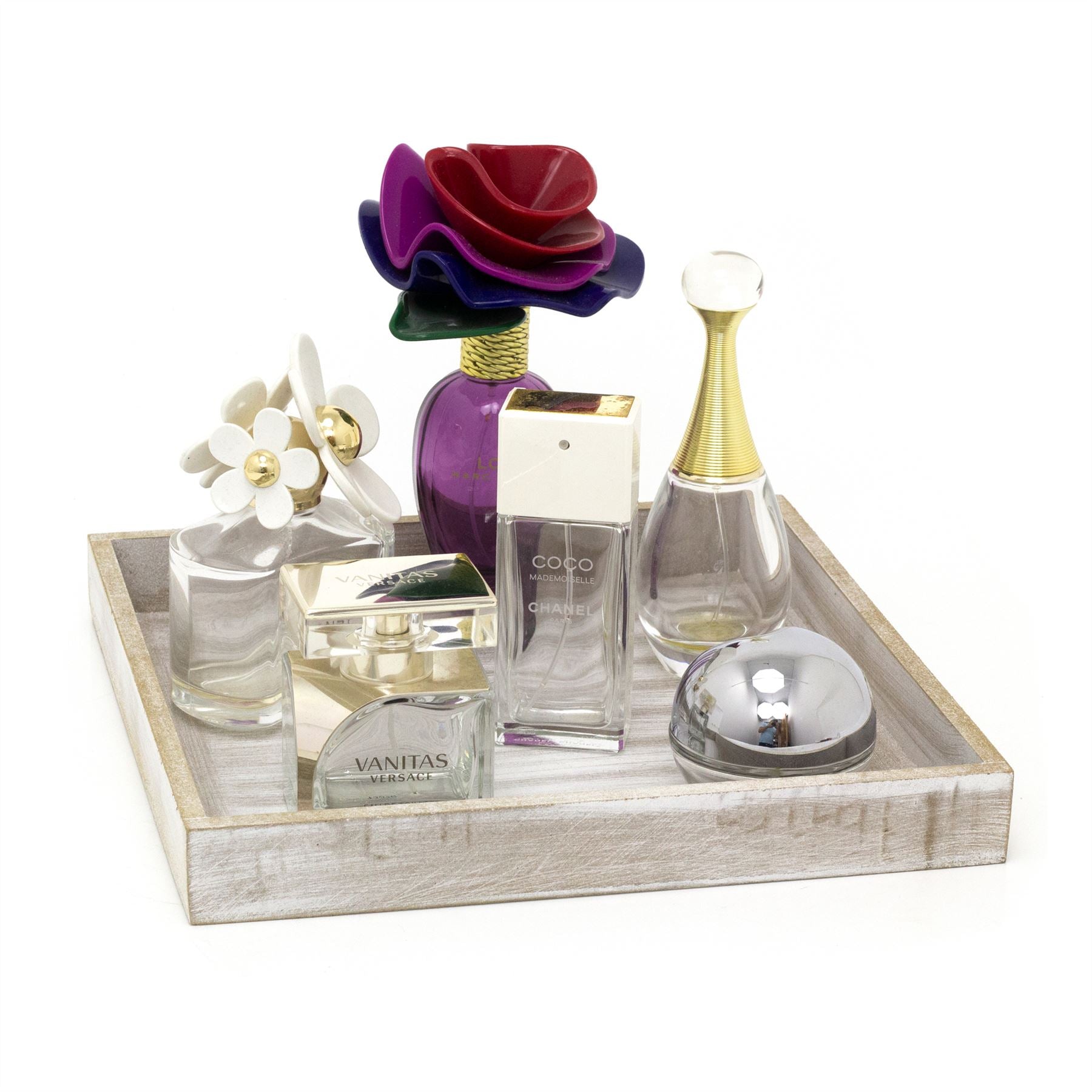 DIMENSIONS | Measuring 25cm by 25cm with a height of 3cm, this grey wooden tray is compact yet spacious enough for various uses