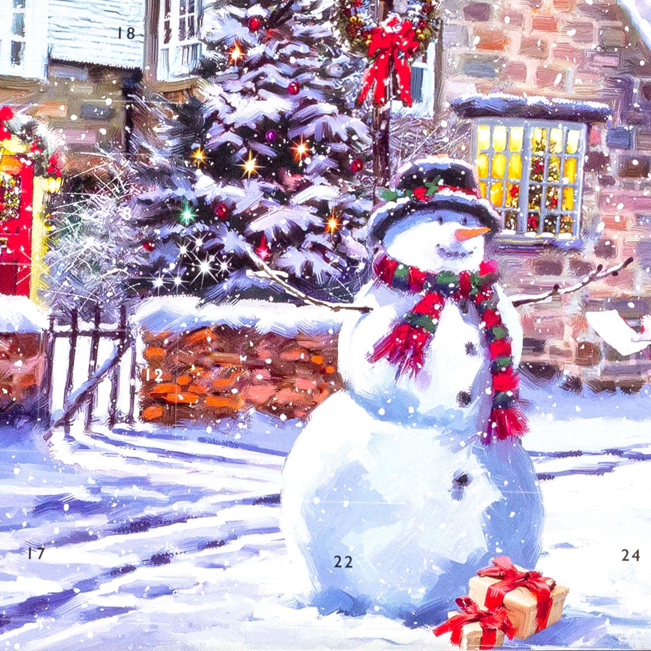 Discover the joy of Christmas with our Santa & The Snowman Advent Calendar! Featuring a picturesque snowy scene with Santa, a snowman, and an English country cottage, this classic picture calendar brings 24 days of festive delight