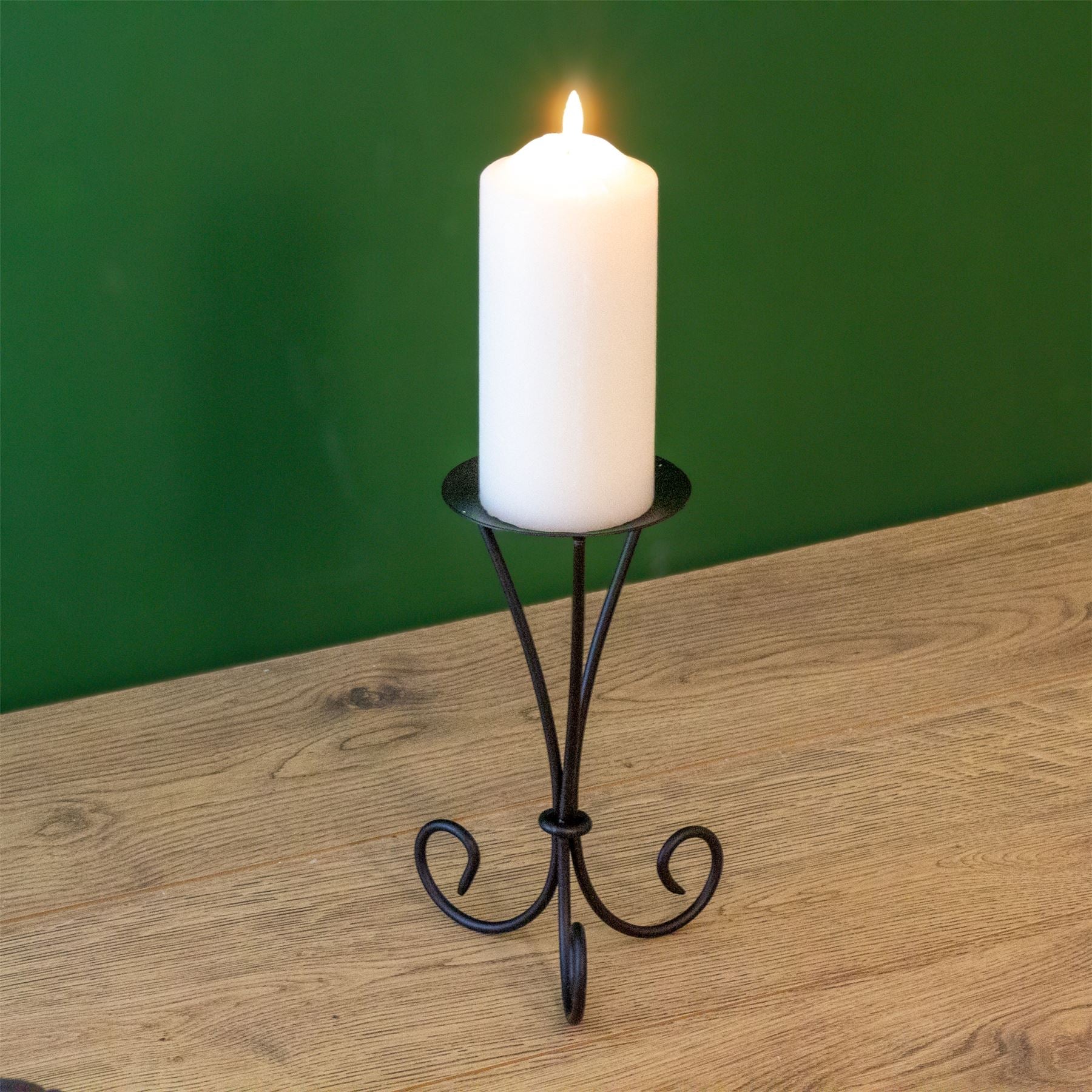 CANDLE PLATE | Designed to accommodate pillar candles, simply place an ivory or white church candle on the stand to create a striking contrast against the black metal. The built-in spike ensures that your candles remain securely in place, eliminating any worries about them toppling over
