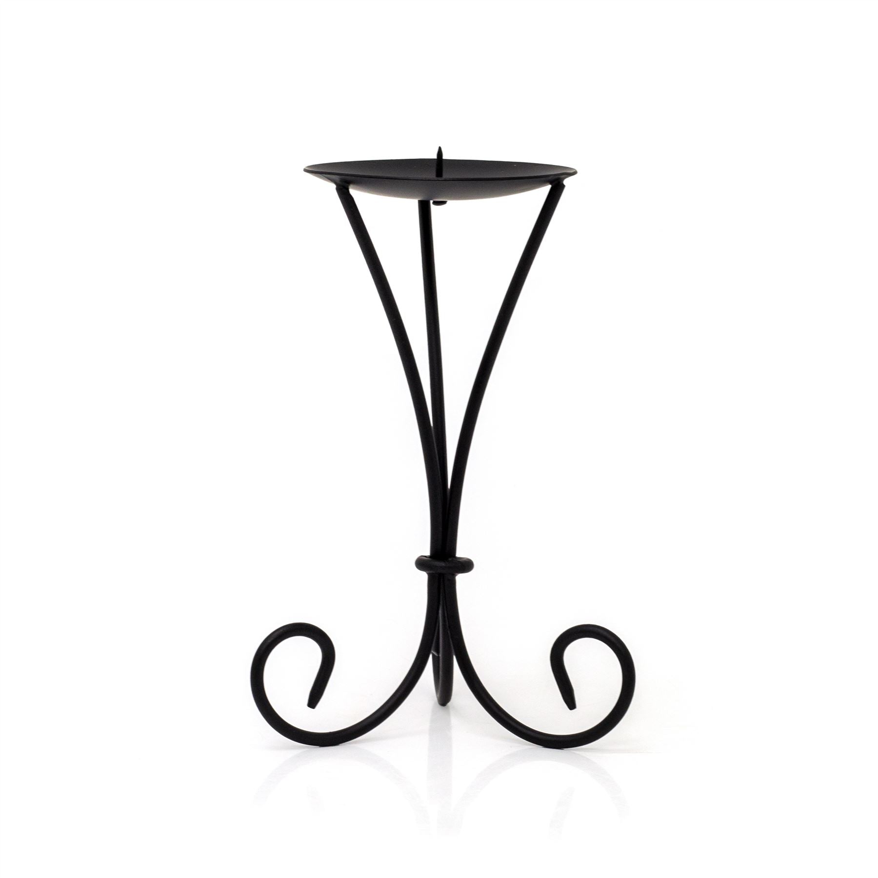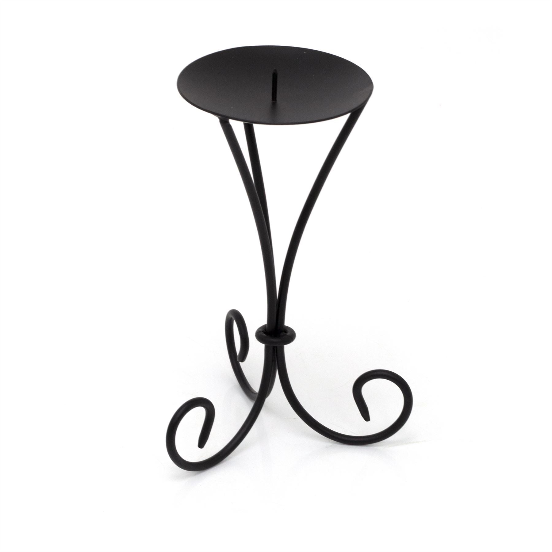 DIMENSIONS | Elevate your home decor with our tall metal scroll candle holder. Crafted with elegance in mind, this sleek black candle holder adds ambience to any room. Measures approximately 21cm