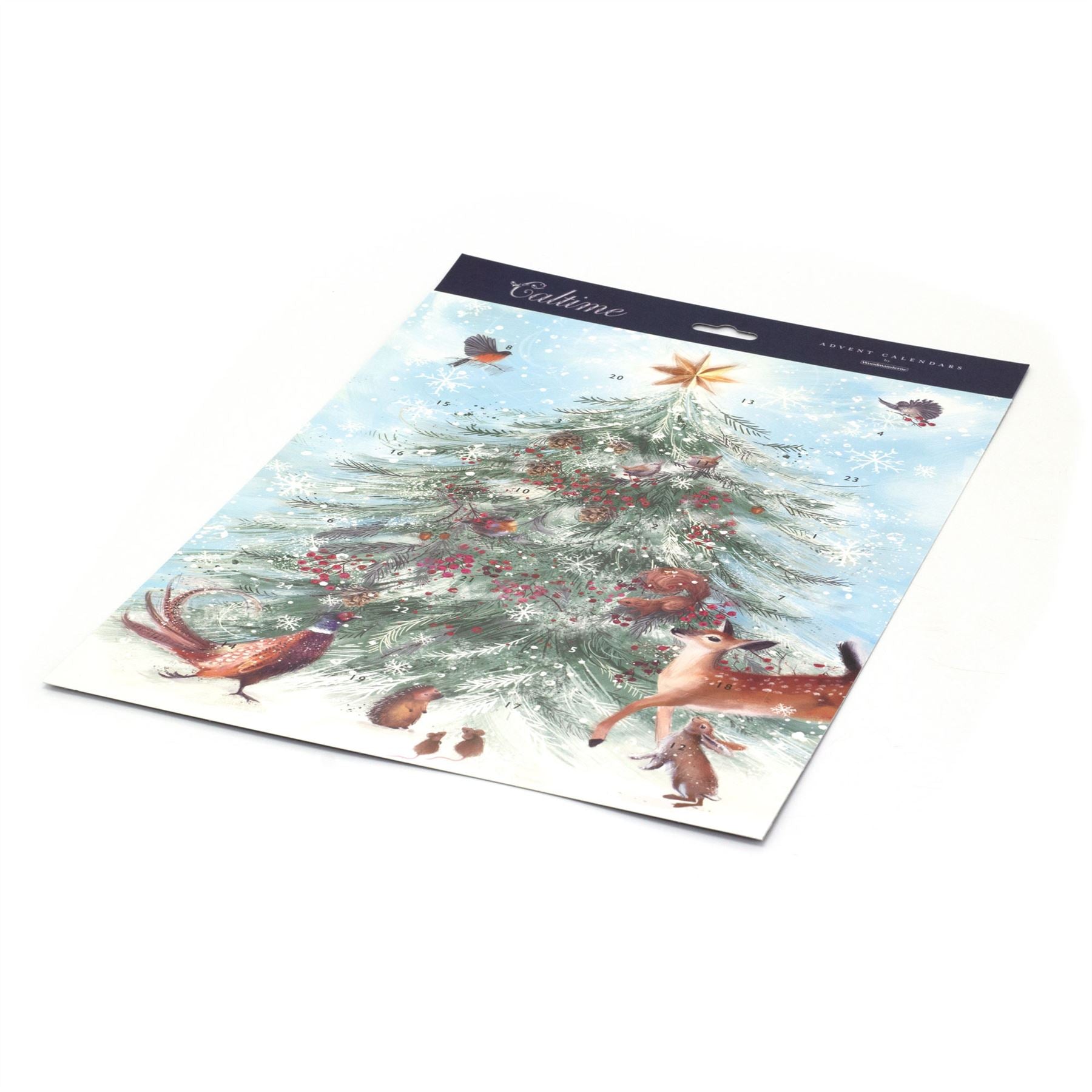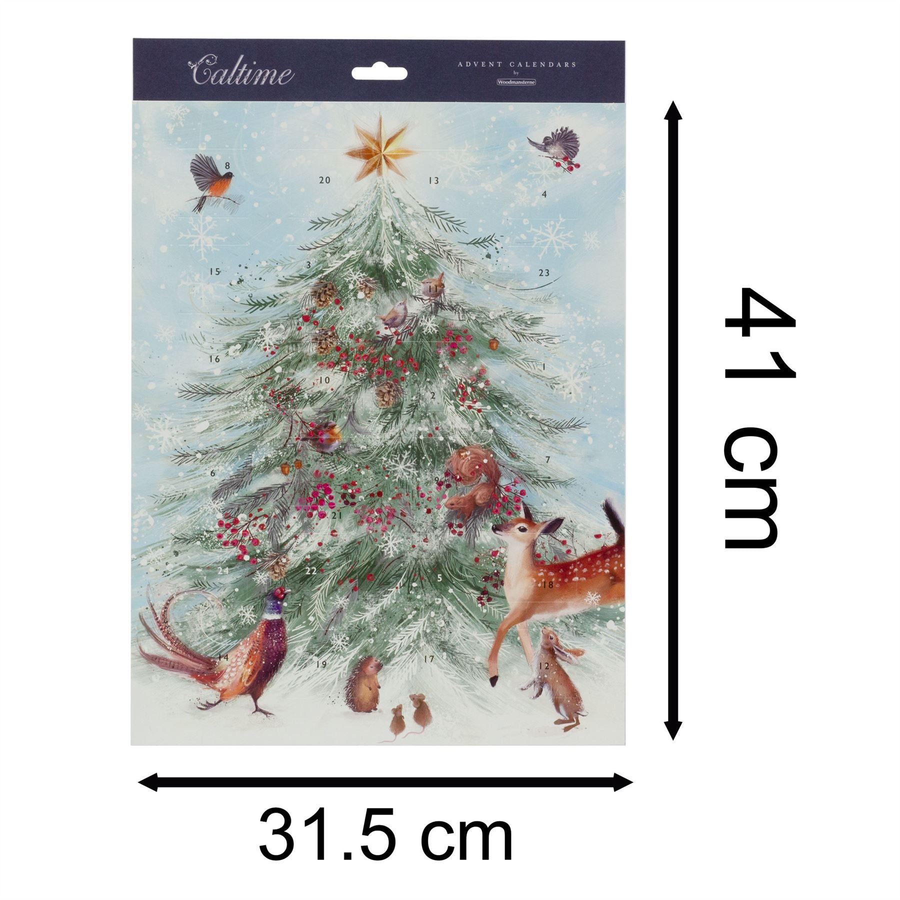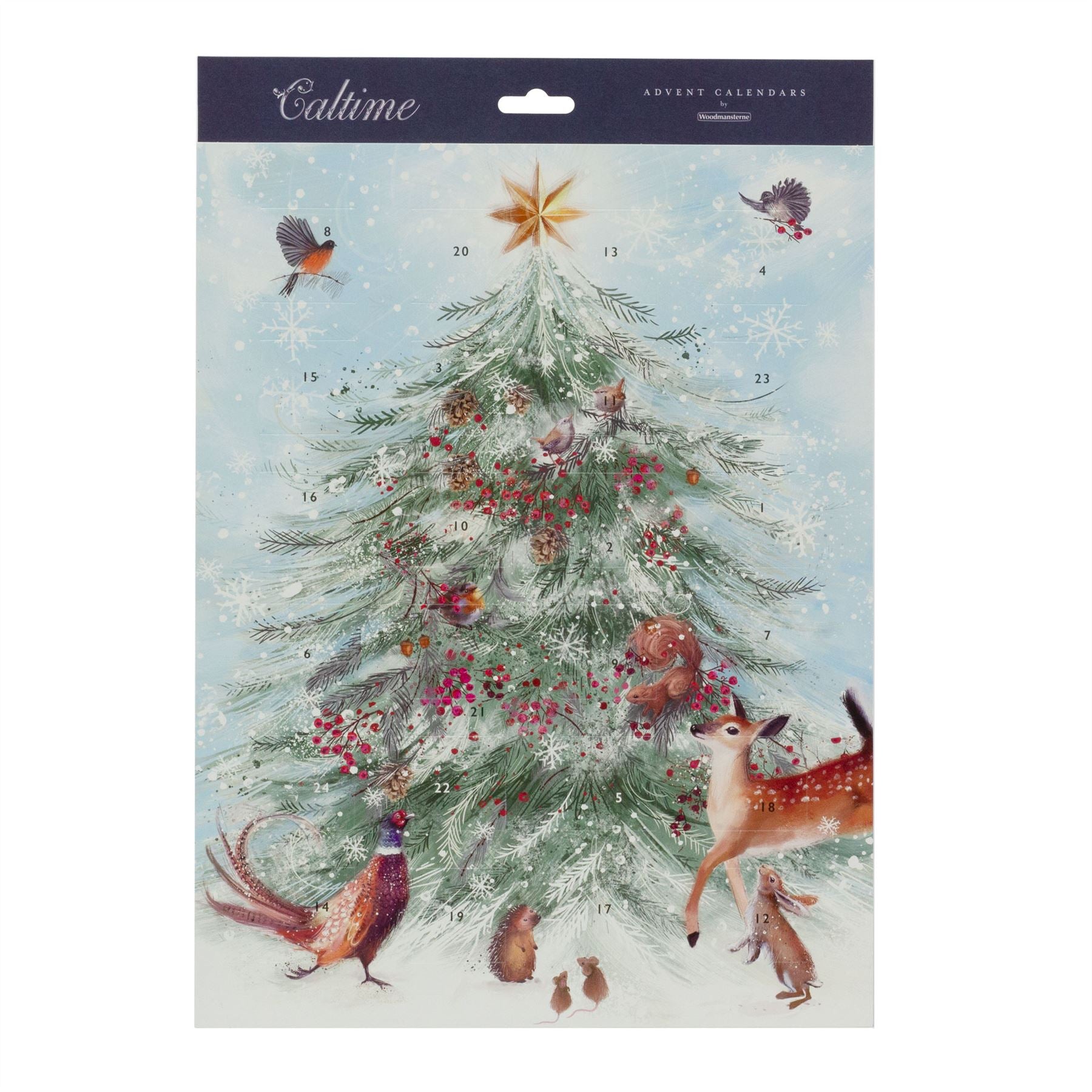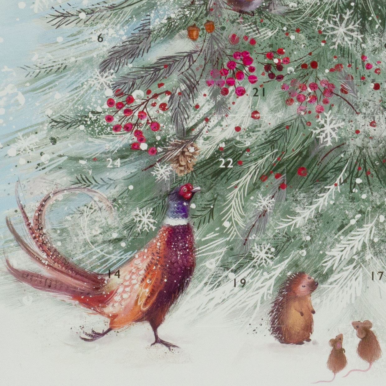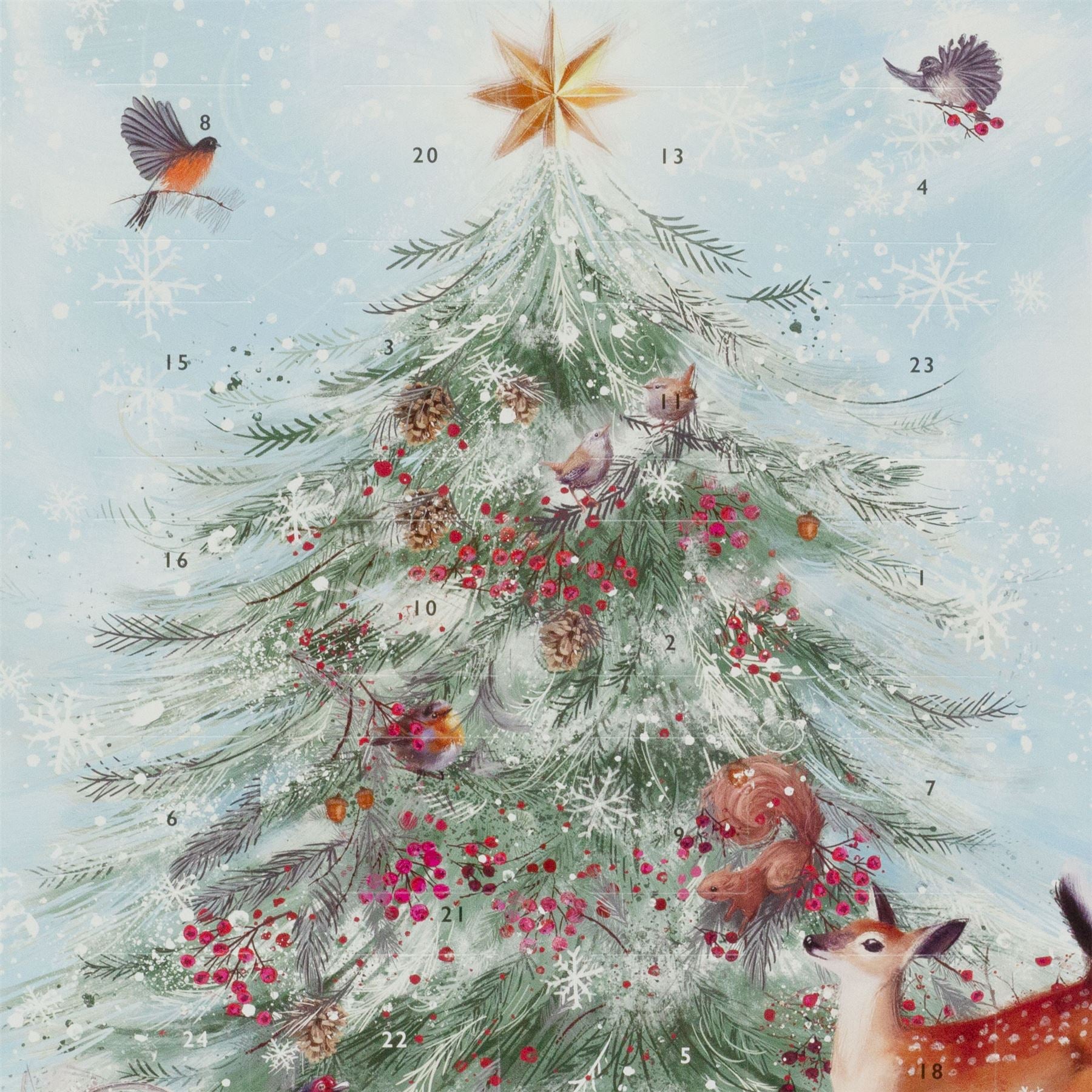 Celebrate Advent with this beautifully illustrated advent calendar featuring woodland creatures gathering around a festive tree. Each day reveals a new detail, bringing the charming scene to life